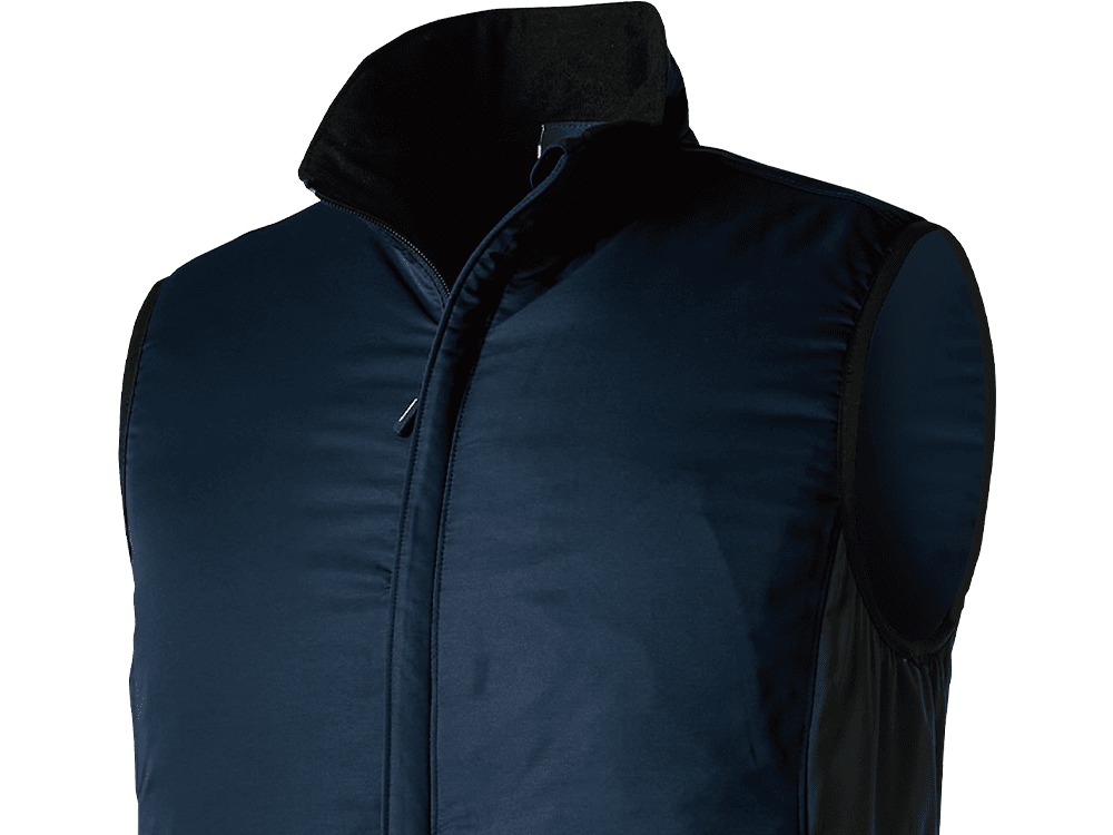 腕が動かしやすいので、作業ベストとしてとても扱いやすい一着です。軽くて着ているストレスが少なく、屋内作業や配送業などにもぴったり。中綿入りでしっかり暖かいのに軽量で、長時間の着用も快適です。胸元や背面に刺繍がよく映えるため、ユニフォームとして採用されることが多いモデルです。