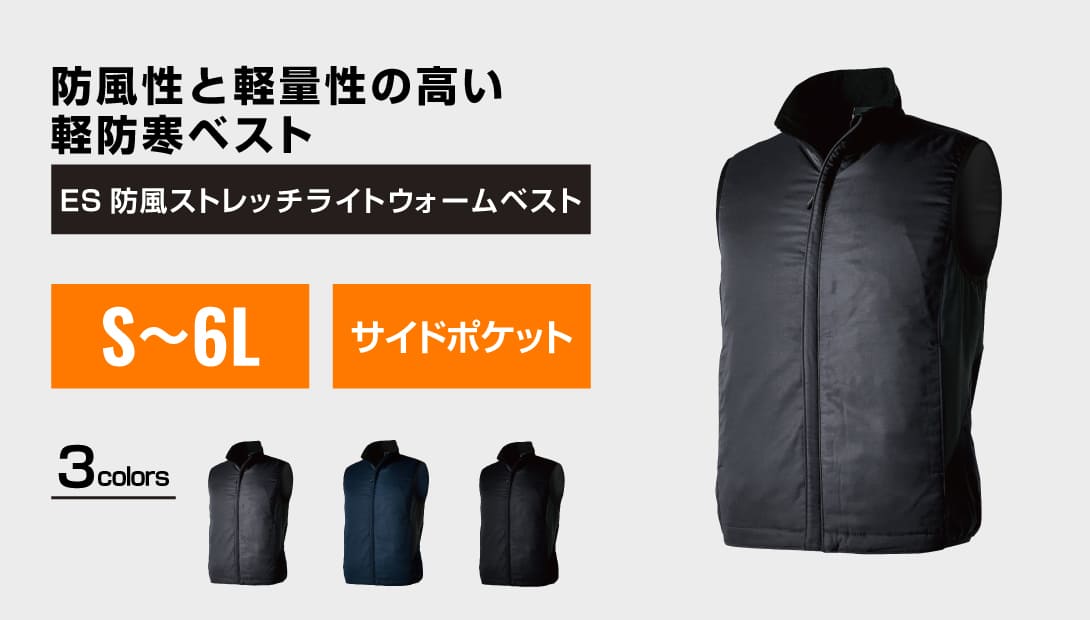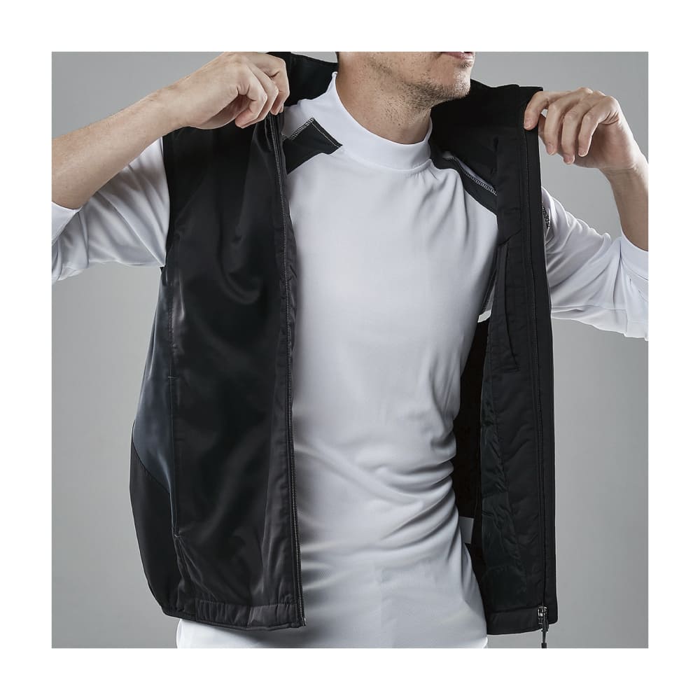 防風×ストレッチ×軽量仕様で、作業時の負担を減らす快適なベスト。中綿入りで暖かく、腕まわりがフリーになるため業務や作業時に最適です。JIS規格 T8118適合の帯電防止機能で静電気を抑え、冬場でも快適。シンプルで加工映えするデザインのため、企業ロゴの刺繍やプリントにも適しています。