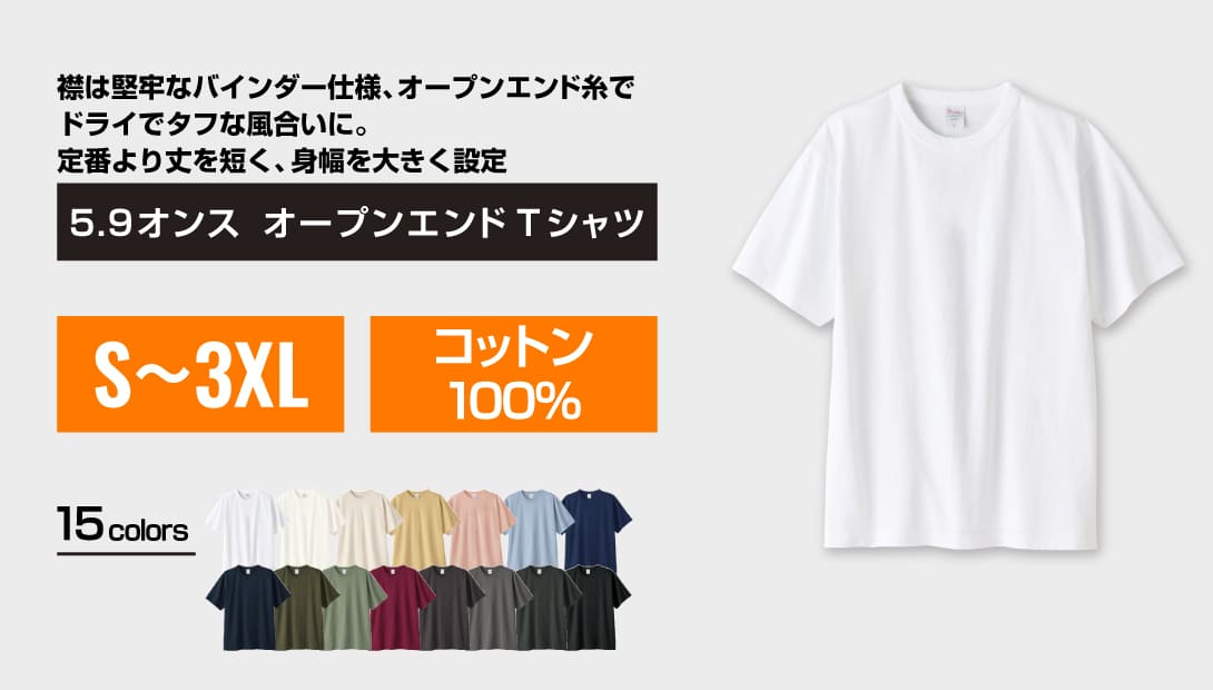 「このTシャツの魅力は、なんといっても15色という豊富なカラーと、今どきの『ボックスシルエット』です! 丈が長すぎないので、女性スタッフが多い現場でも『バランス良く着こなせる』と好評をいただいています。加工の面では、バインダーネックのタフさが魅力。毎日ガシガシ洗う飲食店の制服や、アクティブなイベントスタッフ用として注文が入ることが多いですね。襟がヨレヨレにならないので、せっかく入れた刺繍が台無しになる心配もありません。ラベルも簡単に外せるので、完全オリジナルのチームブランドを作りたい法人様にも自信を持ってプッシュできる一着です!」