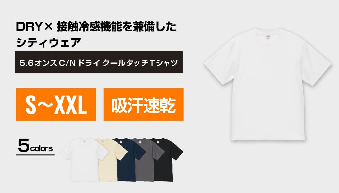 夏用のドライTシャツはテカテカして安っぽく見えがち…という法人様、ぜひこれをお試しください!表が綿なので、見た目は高級感のあるコットンTシャツそのもの。なのに袖を通すとひんやり涼しいんです。この『表面が綿』というのがミソで、刺繍を入れた時にスポーティになりすぎず、上品なワークウェアに仕上がります。プリントの発色も非常に安定しているので、イベント物販用としても自信を持っておすすめできますね。5.6オンスの安心感とダブルステッチの耐久性で、ロゴ入りのユニフォームを長く綺麗に使い続けたい団体様にぴったりの、頼れる夏の一着です!