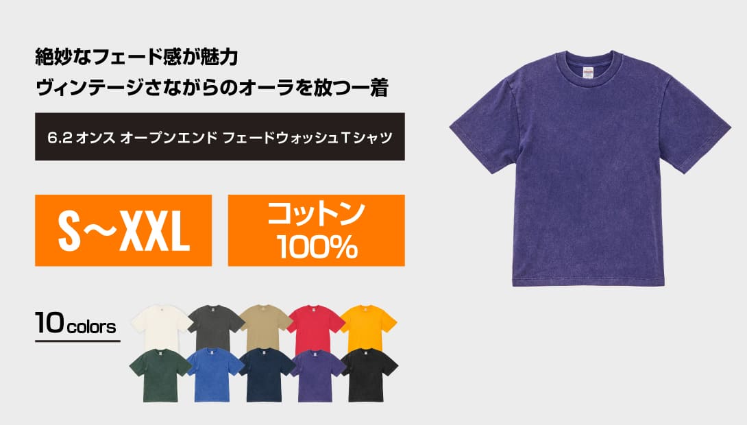 普通のTシャツだと浮いてしまいがちな大きなプリントも、このフェード感のある生地なら最初からしっくり収まります。特に法人様には、胸元に『あえて小さめの刺繍』を入れるスタイルをおすすめしています。生地に力がある分、小さなロゴでも抜群に高級感が出るんです。10色の絶妙なカラーはどれも落ち着いたトーンなので、企業のロゴ色を選びません。カフェのユニフォームやクリエイティブ系の団体様など、『おしゃれさ』を最優先したい現場で圧倒的に選ばれている、スタッフ一押しのアイテムです!