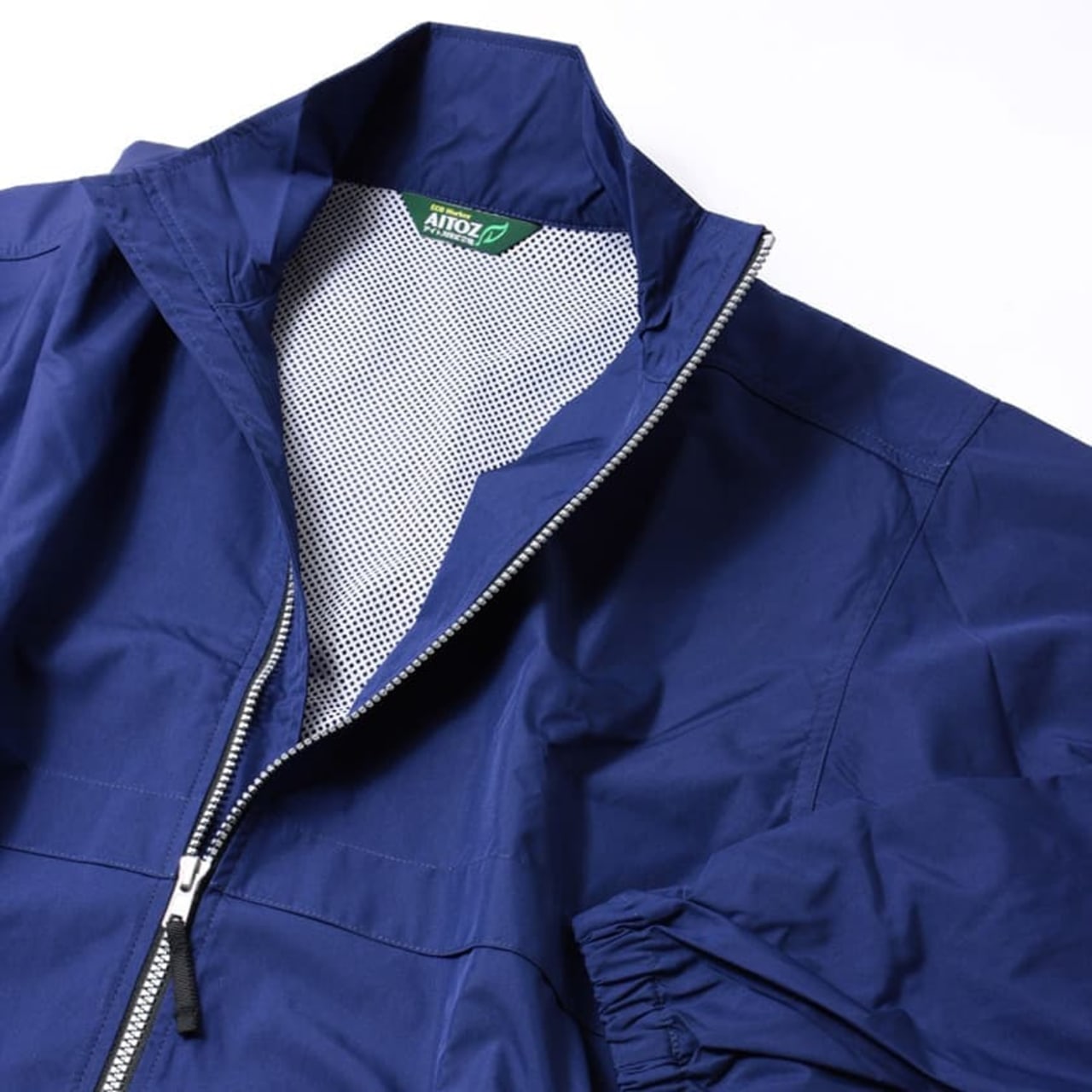 エコショートコートは、コーティングなしで透湿防水機能を施し、耐水圧1,000mmも兼ね備えたエコショートコートです。透湿防水機能とは、ウェア内に溜まった水蒸気と湿気を逃し、外からの水は通さないことでムレを防ぐ技術。防水コーティングの表面ラミネートのような劣化が極めて少ないため、長期間の効果が期待できます。さらには、生地に入り込もうとする水の力を抑える耐水圧加工が加わり、徹底した防水効果を確立。背面はメッシュとマジックテープ付きのベンチレーションで設計されているので、通気性抜群です。サイズはSS〜4L、カラーはブルー、ネイビー、レッド、ブラック、グリーン、イエローが用意されています。