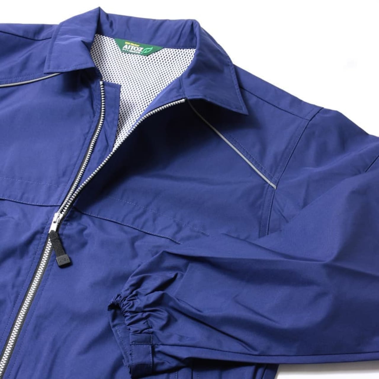 透湿防水機能を備えているため、汗をかく作業や急な天候の変化のある屋外作業にも適しています。裾には脇にゴムを入れ袖口にマジックテープを施しており、着用時にもたつかずフィット感があるのもポイントです。反射材を使ったパイピングをあしらっているので、夜間の作業にもおすすめ。両脇ポケット、内ポケット、左袖のペン差しなど細部へのこだわりにも注目です。