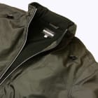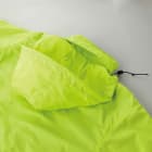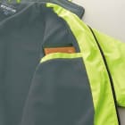 着心地は軽く、袖のアジャスターや裾のストレッチ性でフィット感もあります。フードが内蔵された襟は高めで、風の侵入を防いでくれる効果もあります。