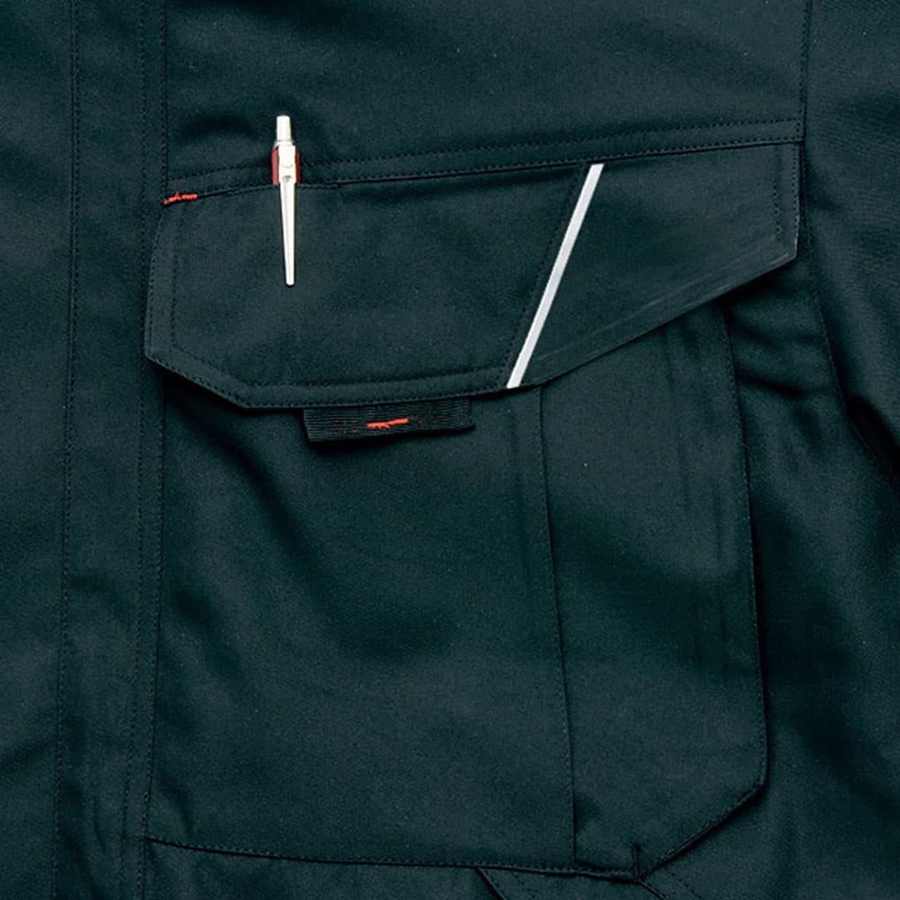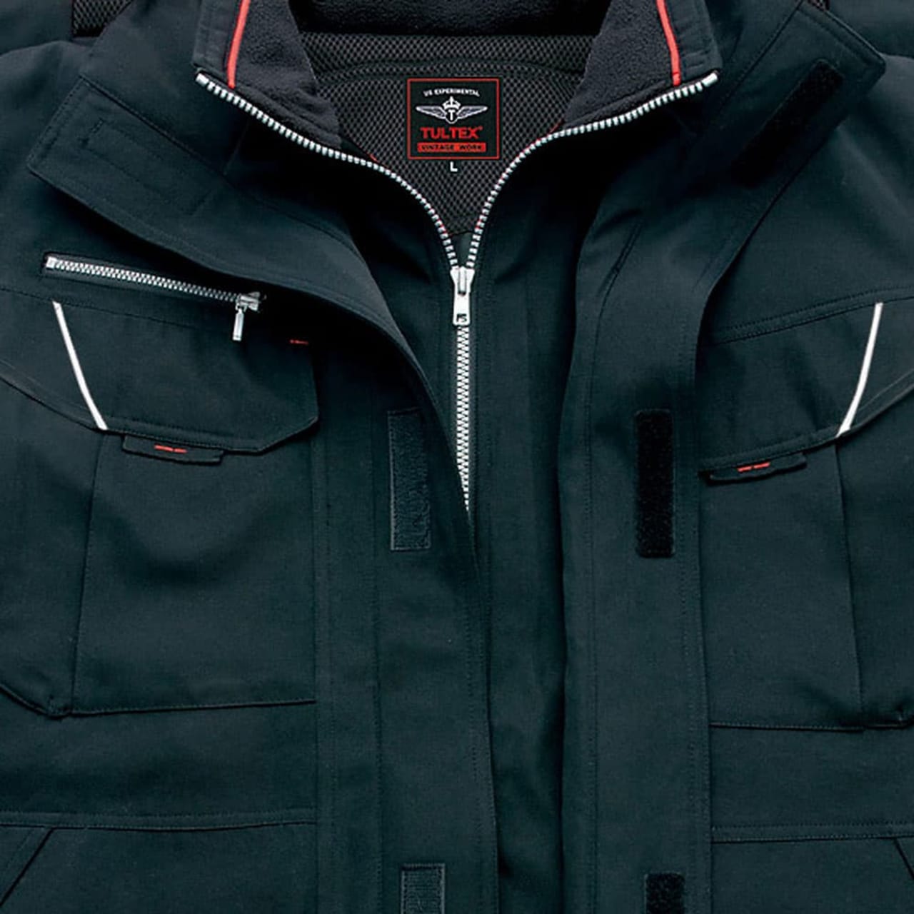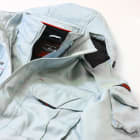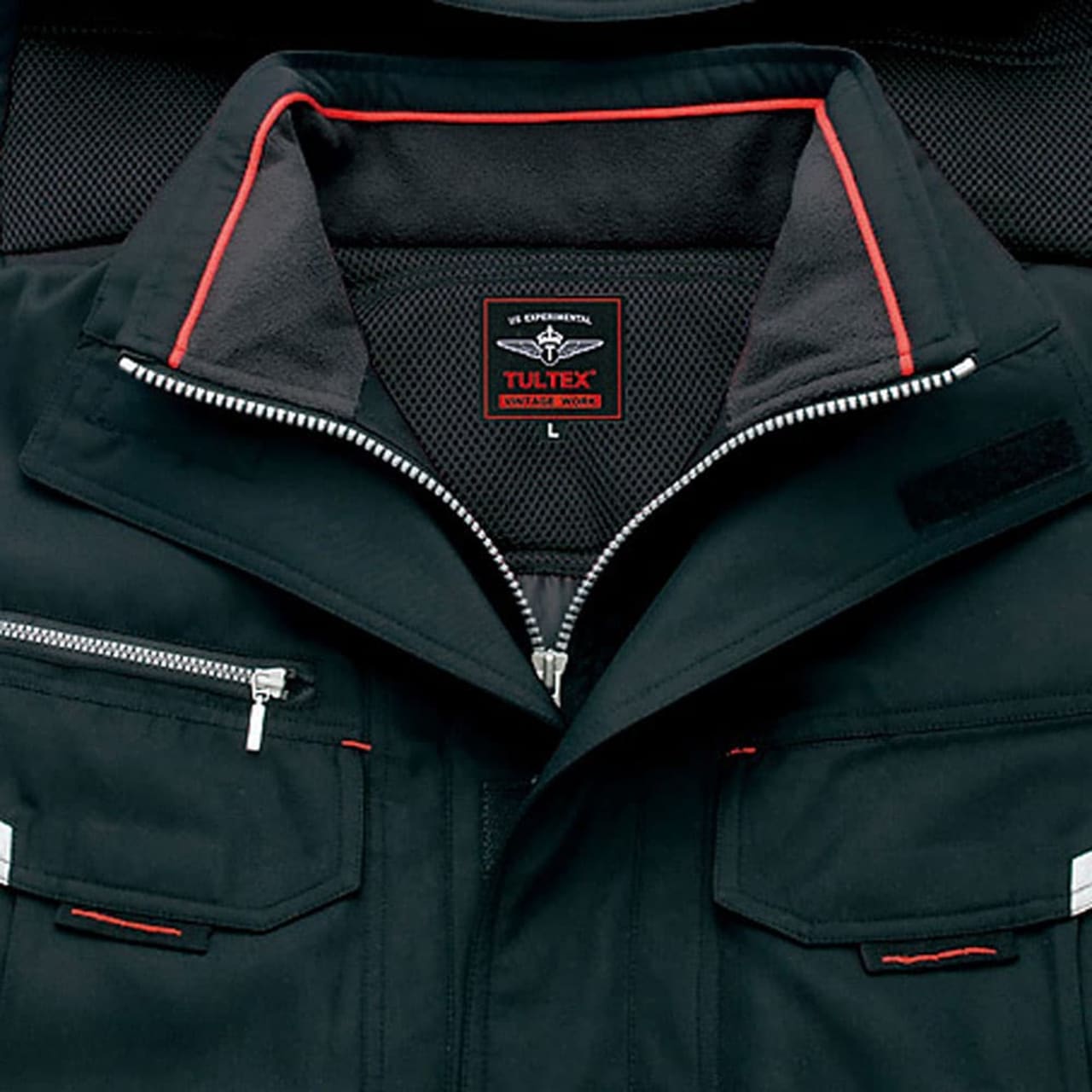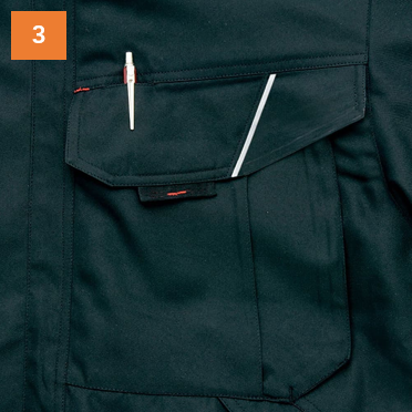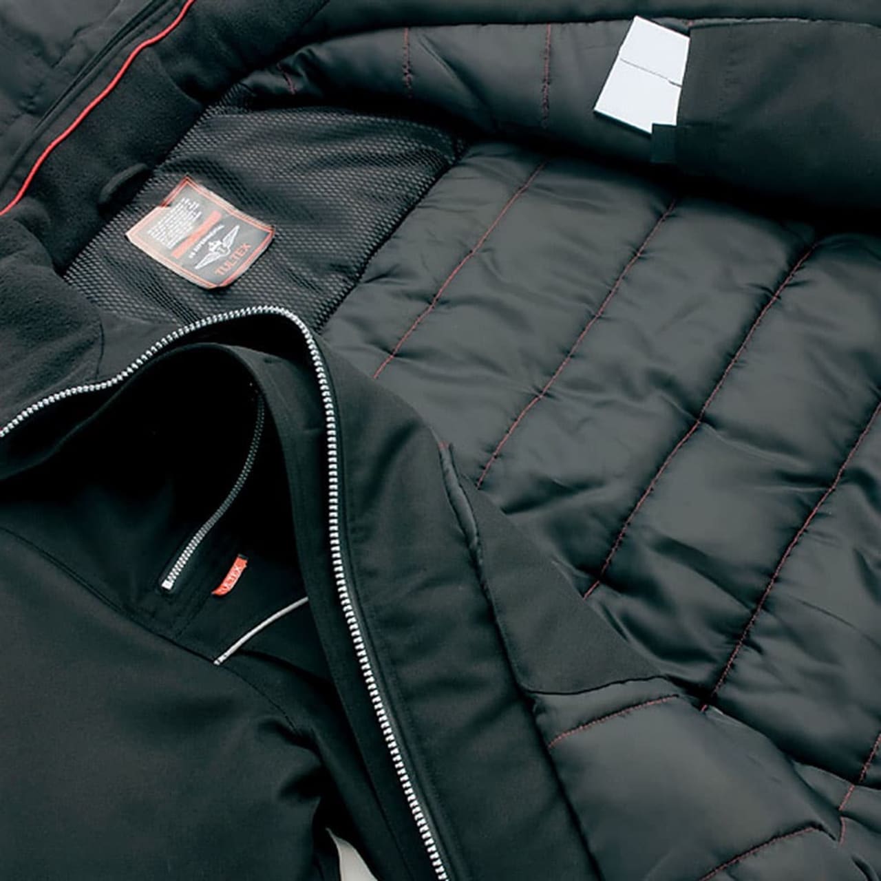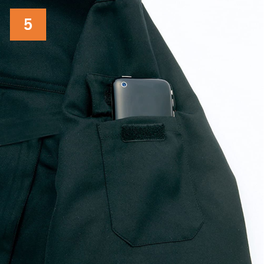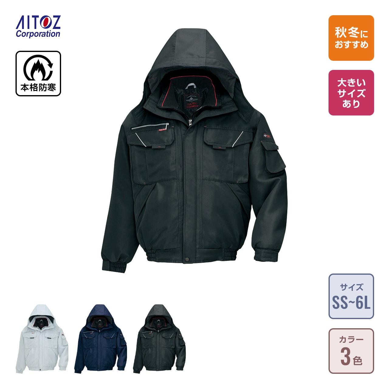 ウォーム感をアップする中綿入りボディ、首元からの風の侵入を防止するフルジップ仕様と寒い季節の作業をサポートする仕上がりが魅力です。フードは取り外しができるため、シーンに合わせて着用いただけます。胸元、腰、袖、内側へと豊富なポケットを備えており、必要な小物類をこのブルゾン1着で多く持ち運べるのも嬉しいポイント。反射パイピングなどの細やかな配慮にも注目です。