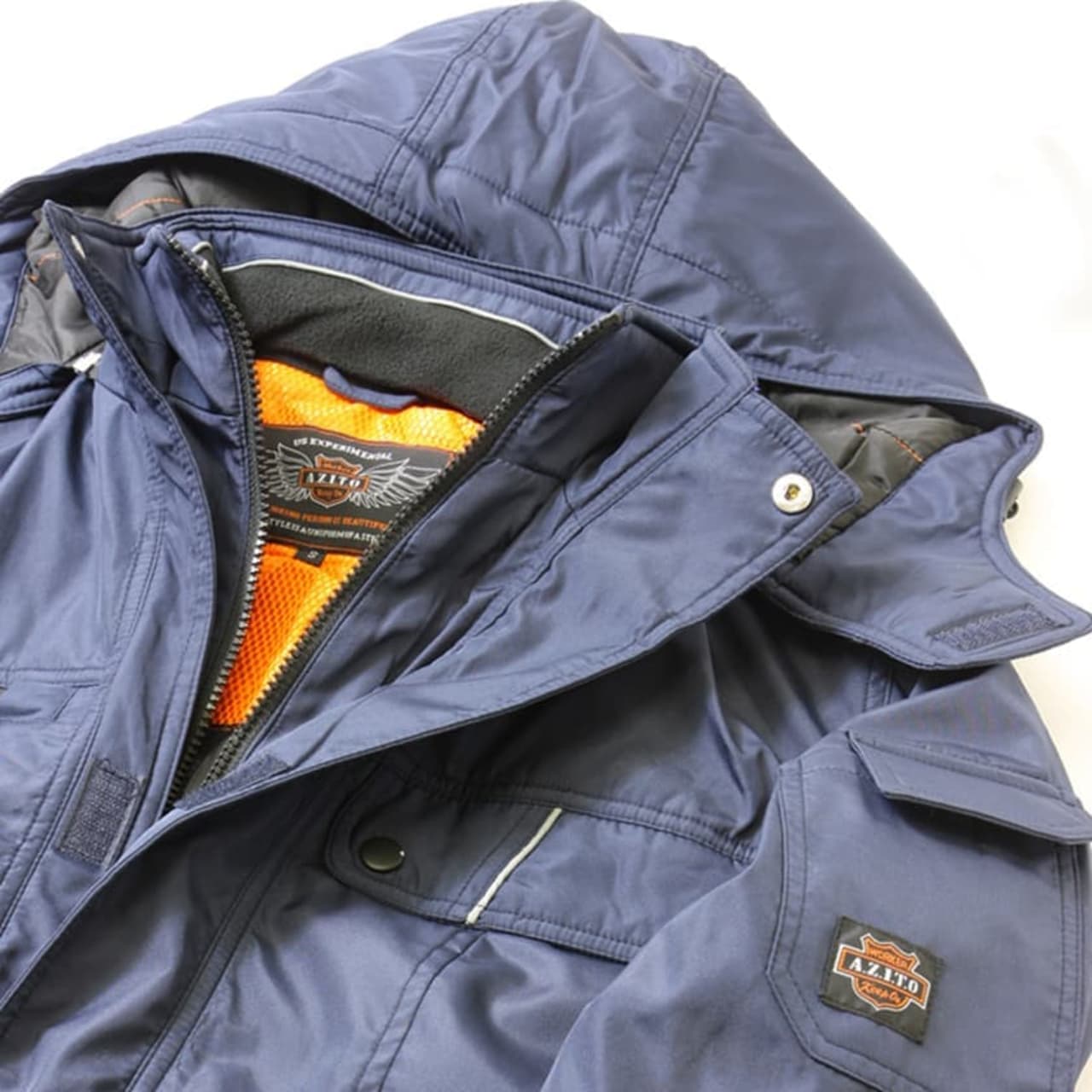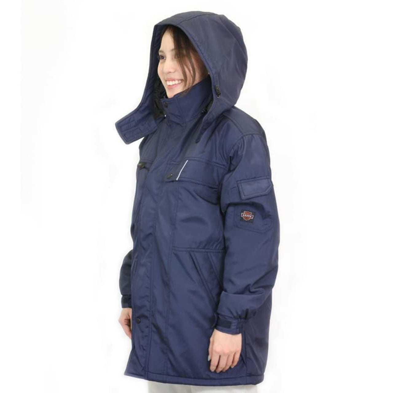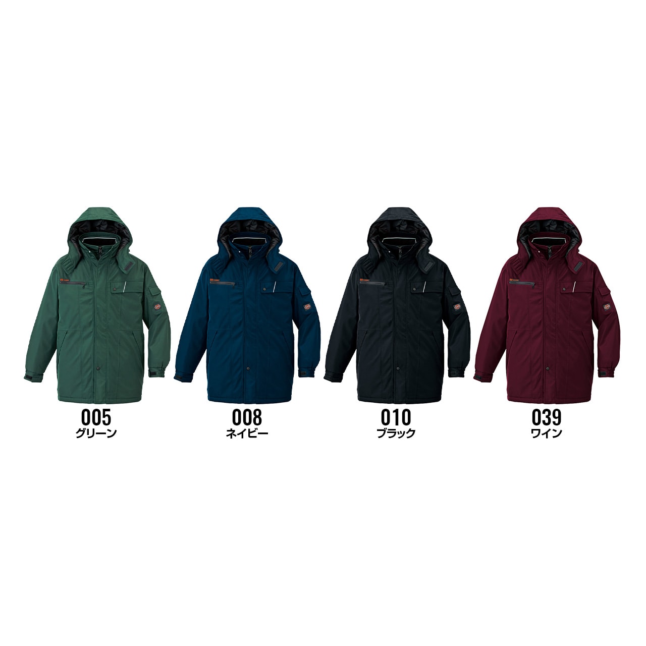 防風性、保温性に優れたボンディング素材使用の防寒コートです。中綿もたっぷり入れて、よりあたたかな着心地を実現します。取り外しのできるフードは首元までカバーできるデザインになっており、冷たい風から顔周りを守ってくれます。内外にポケットを備えているため、ちょっとした小物も手ぶらで持ち運びが可能。反射材を使用しているので、暗い場所での作業にもおすすめです。