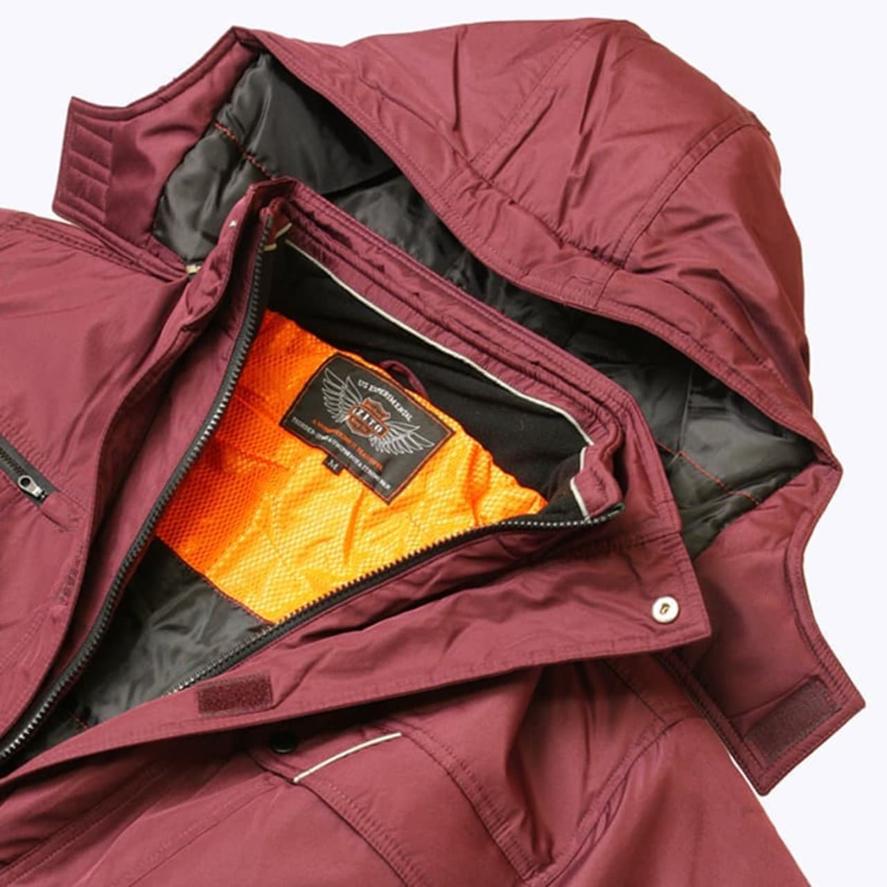 ボンディング素材の使用と二重衿仕様などの設計で、防風性と防寒性を高めた本格防風防寒コート。ボンディング素材はマイクロファイバー生地とトリコット生地を張り合わせた生地であり、風邪を通しにくくしてくれます。異なる素材の生地を特殊な方法で貼り合わせることで、ハリが生まれることで防風性が高まるのです。さらに、衿に施された二重衿仕様は、衿を二重に仕立てることで保温性を高めています。カラーはシックなグリーン、ネイビー、ブラック、ワインの4色。サイズはSS〜6Lと男女兼用になっています。