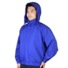 袖裏キルト採用によって動いた時のカサカサした音を抑えた構造の薄手ジャンパー。さらには、デュースポ採用で薄手なのに強度があって型崩れしにくく、優れた 撥水、防水機能も発揮しています。裏地には肌触りの良いフリース、袖裏にはキルトをあしらっており、防寒性も抜群です。ポケットは左右の内側、両脇に設置。収納式のフードもついており、シーンに合わせて取り外し可能です。カラーはブルー、ネイビーの2色を展開。カラーごとに衿部分の配色が違うなど、デザイン性バッチリ。サイズはM~5Lの中から選べます。