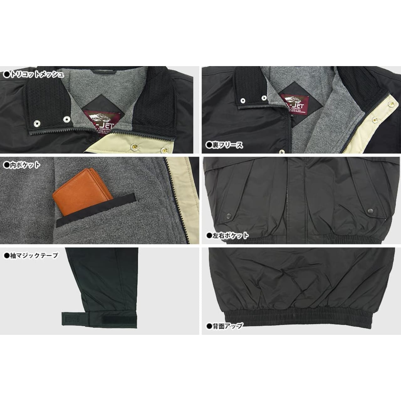 | □右内ポケット □左内ポケット □袖マジックテープ |