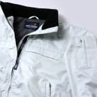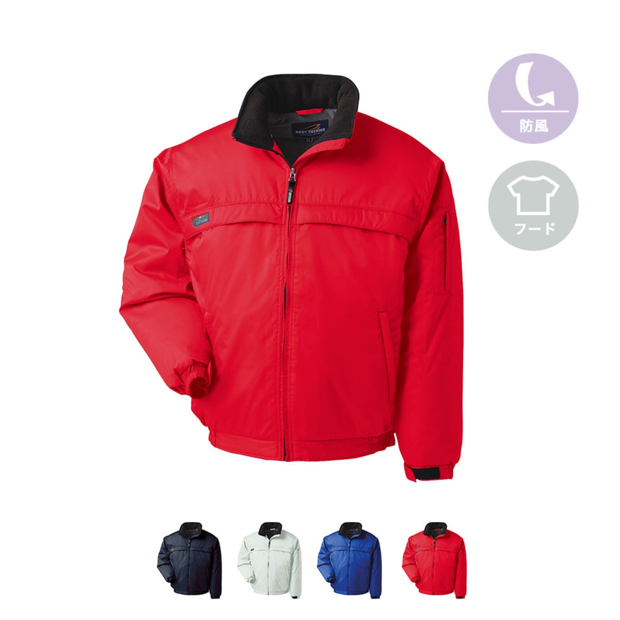 薄くて軽い、それでいて暖かいジャンパー です。UVカット機能や防風・耐水性にも優れているので、野外でのイベントが増える秋や寒い冬のジャンパーとして重宝するでしょう。表地・裏地ともにポリエステル100%を使用しており、表地はUVカット性や防透性、防風性、耐水性に優れたウェーブロンを使っています。裏地は、静電気を抑える制電トリコットを採用。冬に起こりやすいパチパチを防いで快適に脱着できます。収納式のフードや多数ポケット、袖口部分のマジックテープ仕様など便利機能満載。カラーは4色展開で、サイズはS~5Lと幅広く取り扱われています。