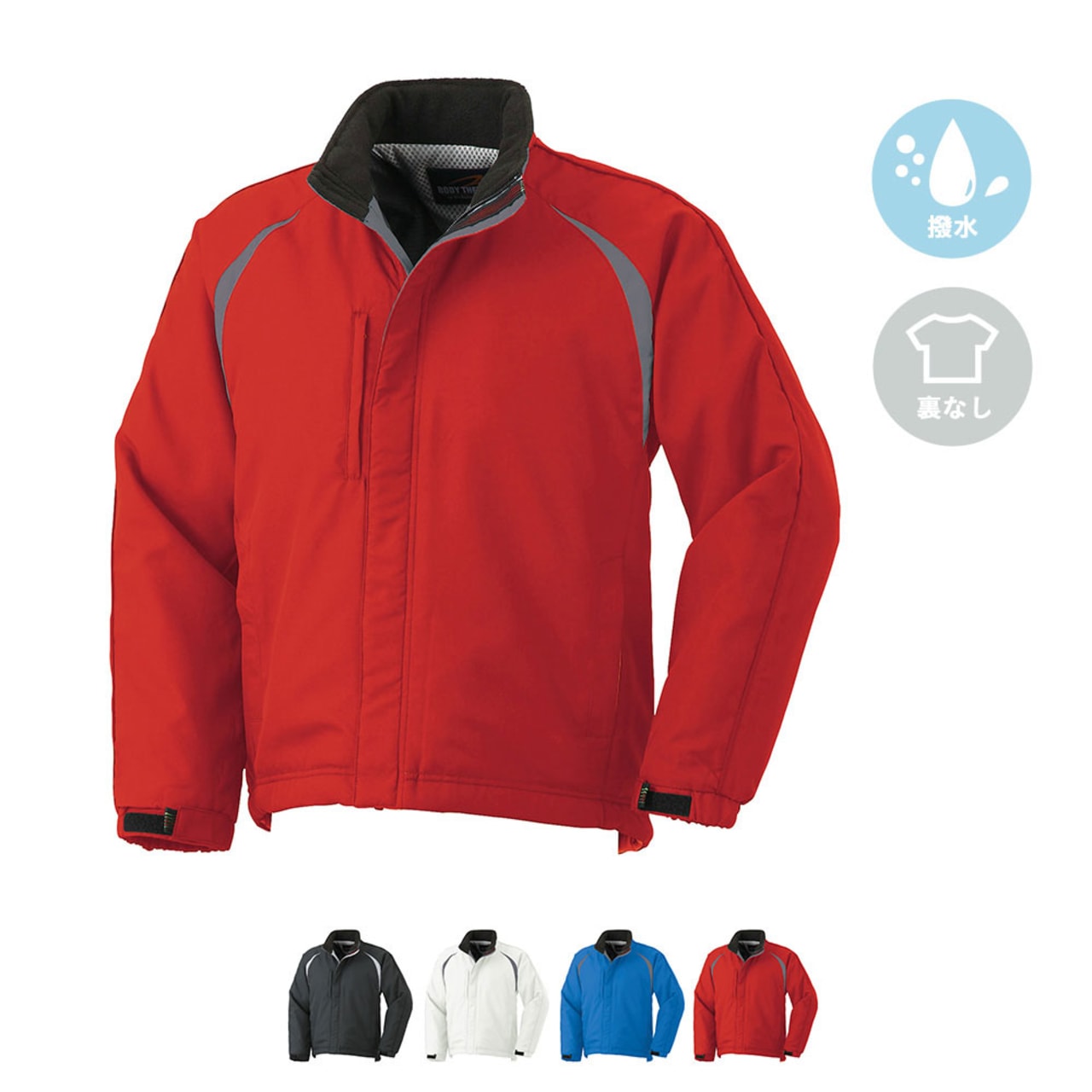 | □背当付・衿フリース □背ベンチレーション □右胸タテポケット |