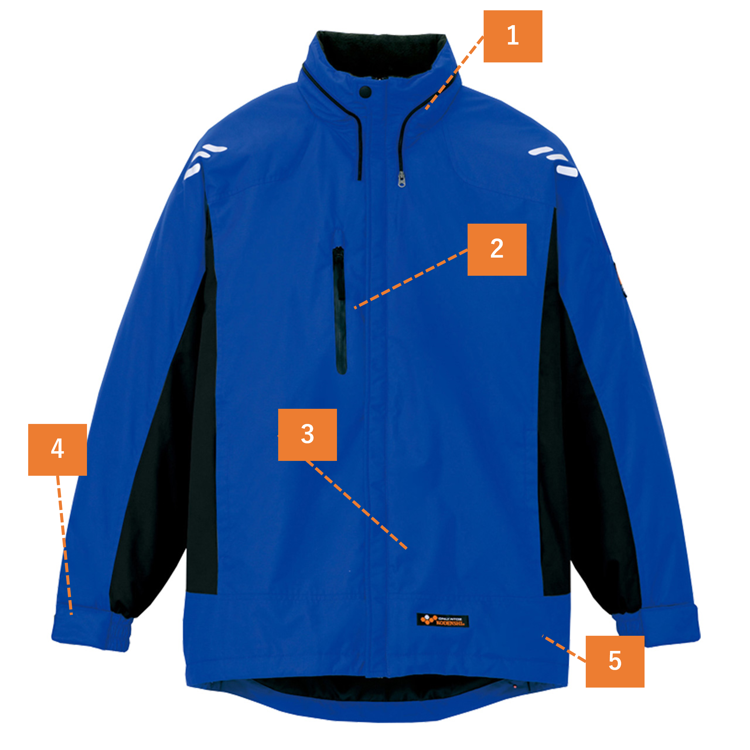 | □反射テープ(背中) □衿/衿裏フリース □袖口/ゴム・マジックテープ |