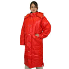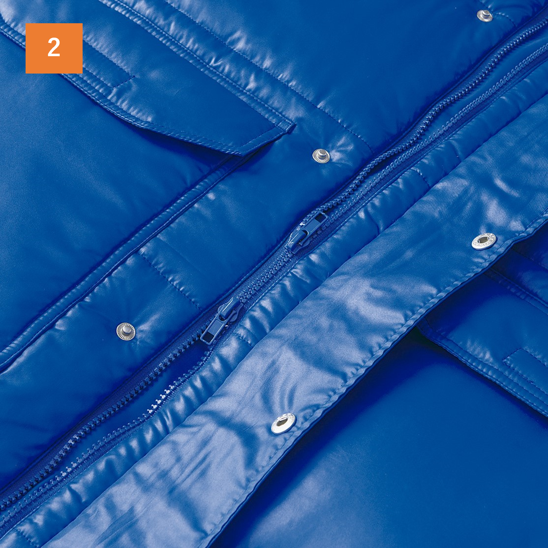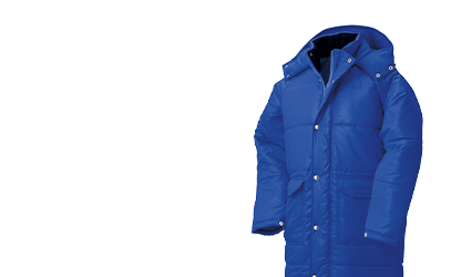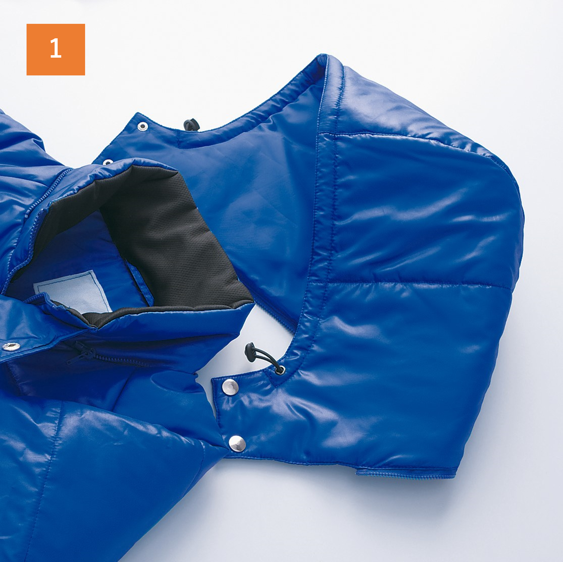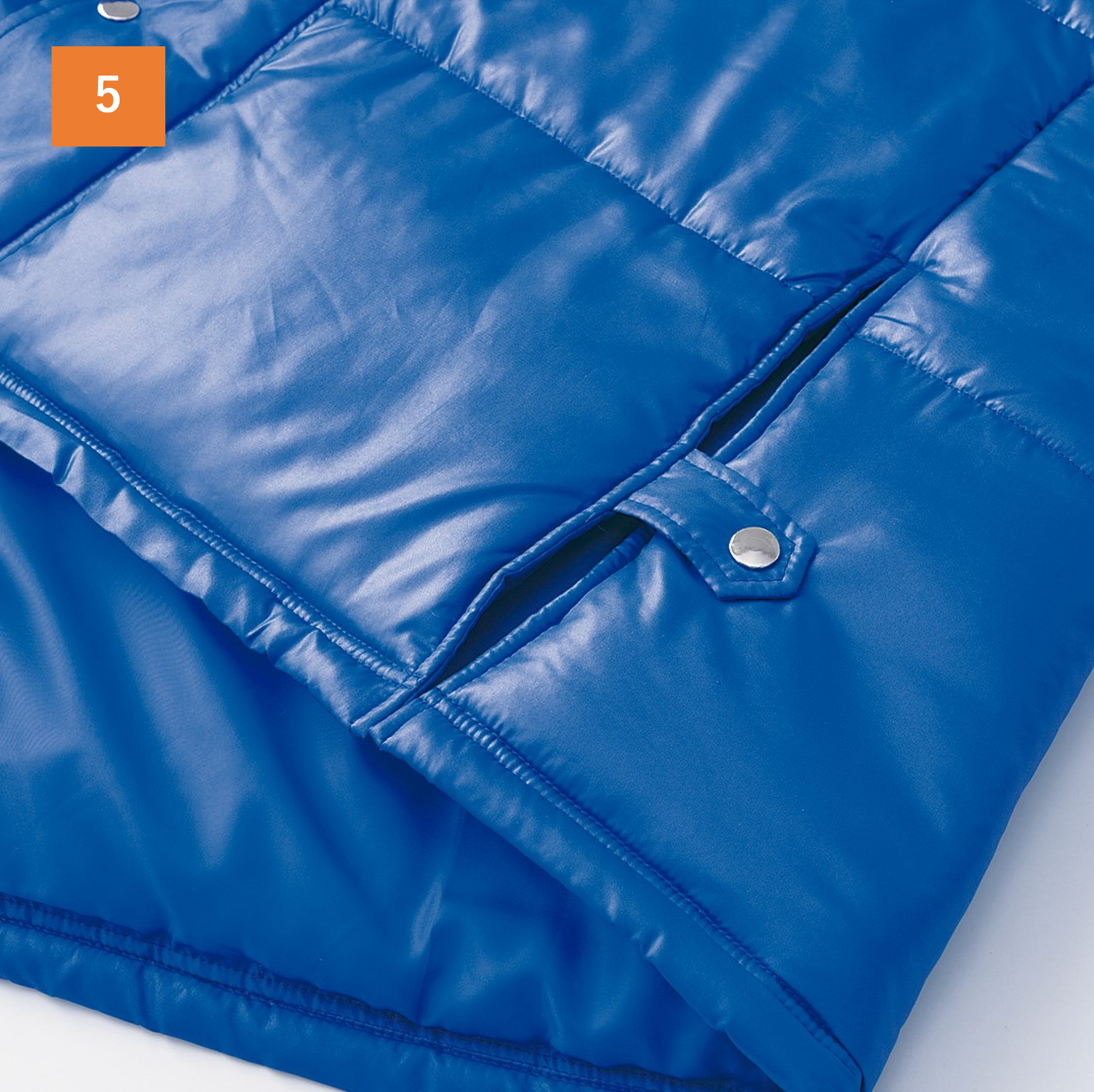 撥水性の高い表地に保温性の高い中綿を使用しています。 ハンドウォーマー付きのポケットや動きやすいスリット等、機能性も追求しました。