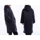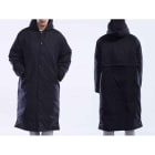 ボリュームある中綿が入ったモコモコのロング丈コートなのに、軽くて動きやすいベンチコートです。体をすっぽり包み込む膝下までのロング丈で雨風や寒さからしっかり守ってくれます。裾にはスリットが入っているので、ロング丈特有の動きにくさがありません。表地はナイロン100%で柔らかめの風合い。それでいて、撥水性ありで丈夫で耐久性ある素材です。背中ベンチレーションや多数ポケットなど便利パーツも設置されています。カラーはブラック、ネイビーの2色、サイズは110〜XLと幅広く、子供から大人サイズまで着用できるベンチコートです。
