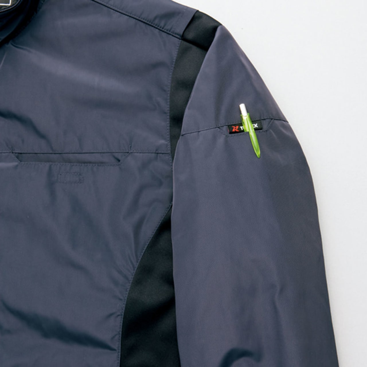 腕を上げたり、下げたりする動きをスムーズに行える、ニット切り替えデザインがこの商品の特徴です。荷物の移動や手を伸ばして行う作業など、さまざまなワークシーンに適しています。すっきりとしたツートンカラーで、スタイリッシュな着こなしが完成するのも魅力です。SSから6Lまでの幅広いサイズ展開も嬉しいポイント。秋冬シーズンに活躍するアイテムです。