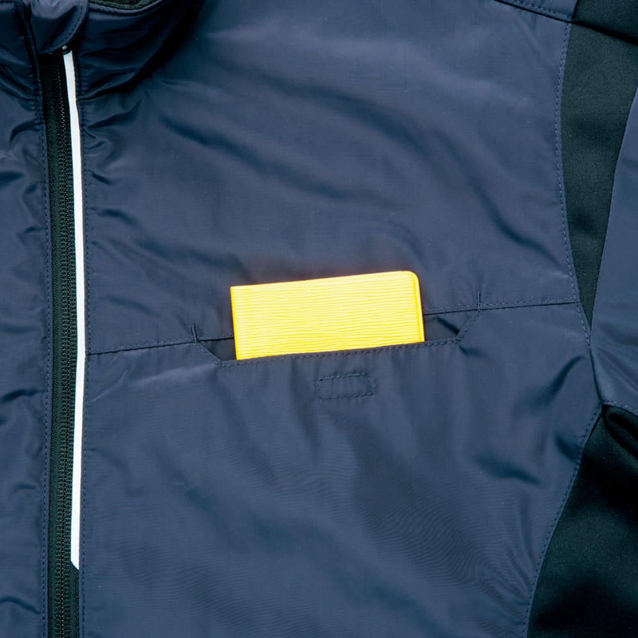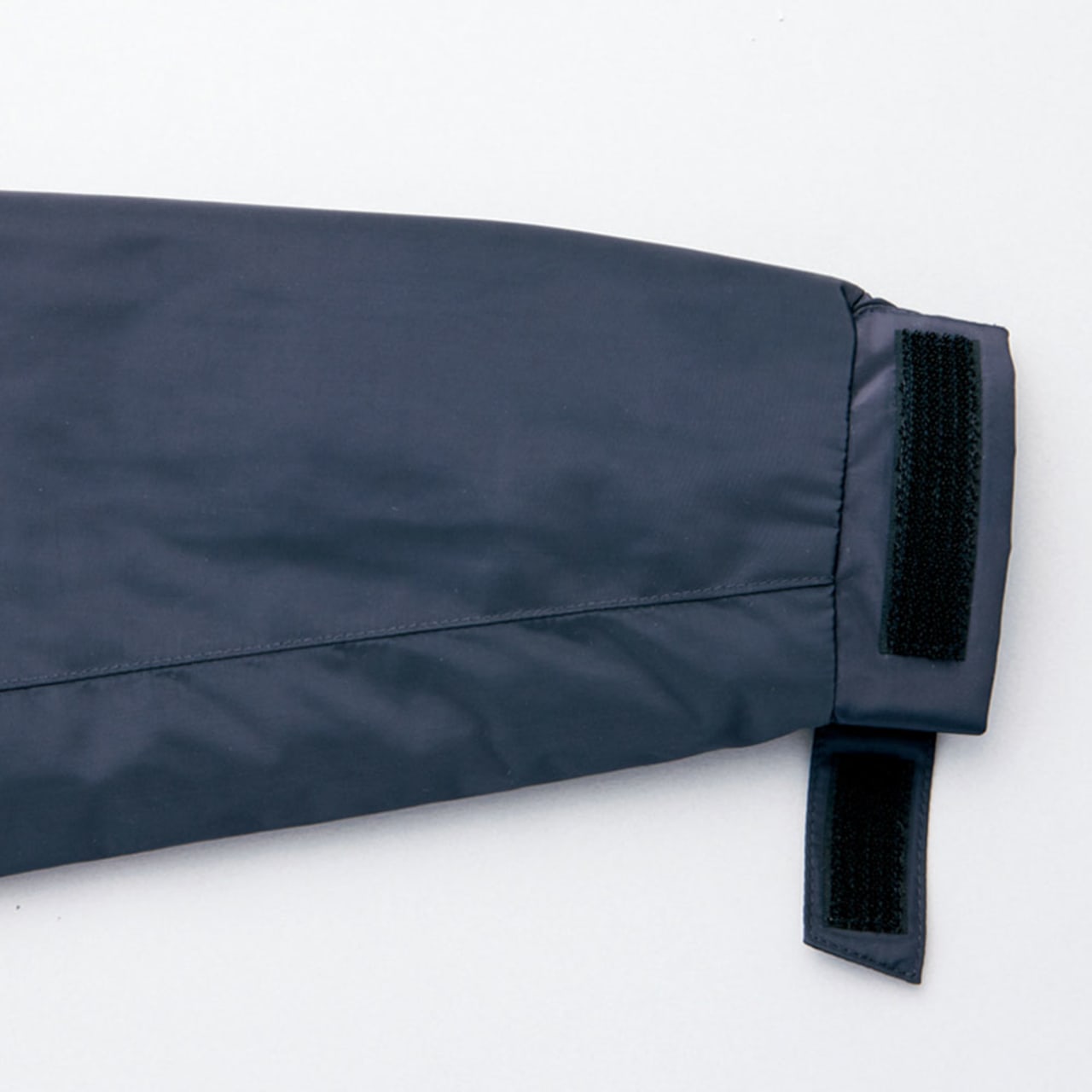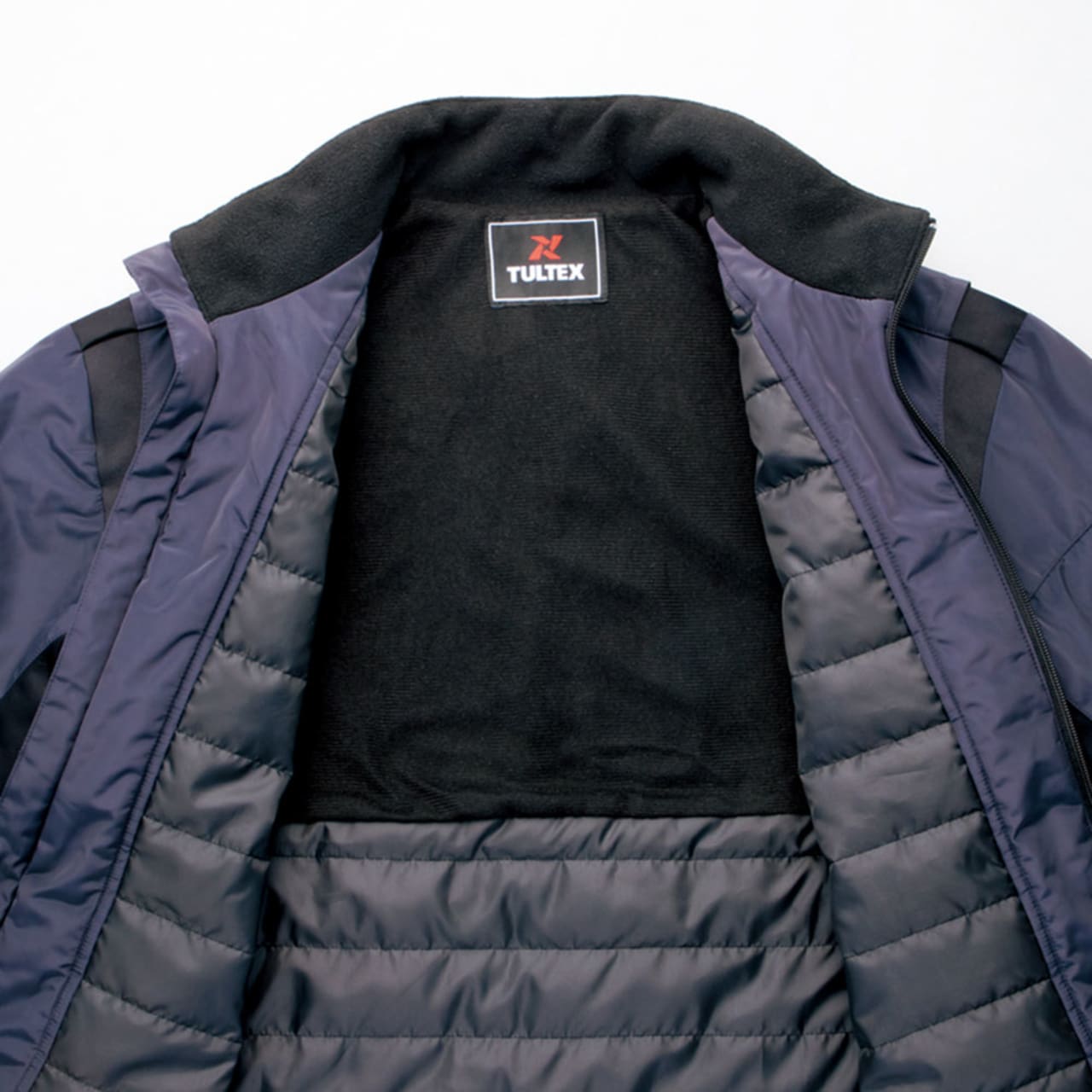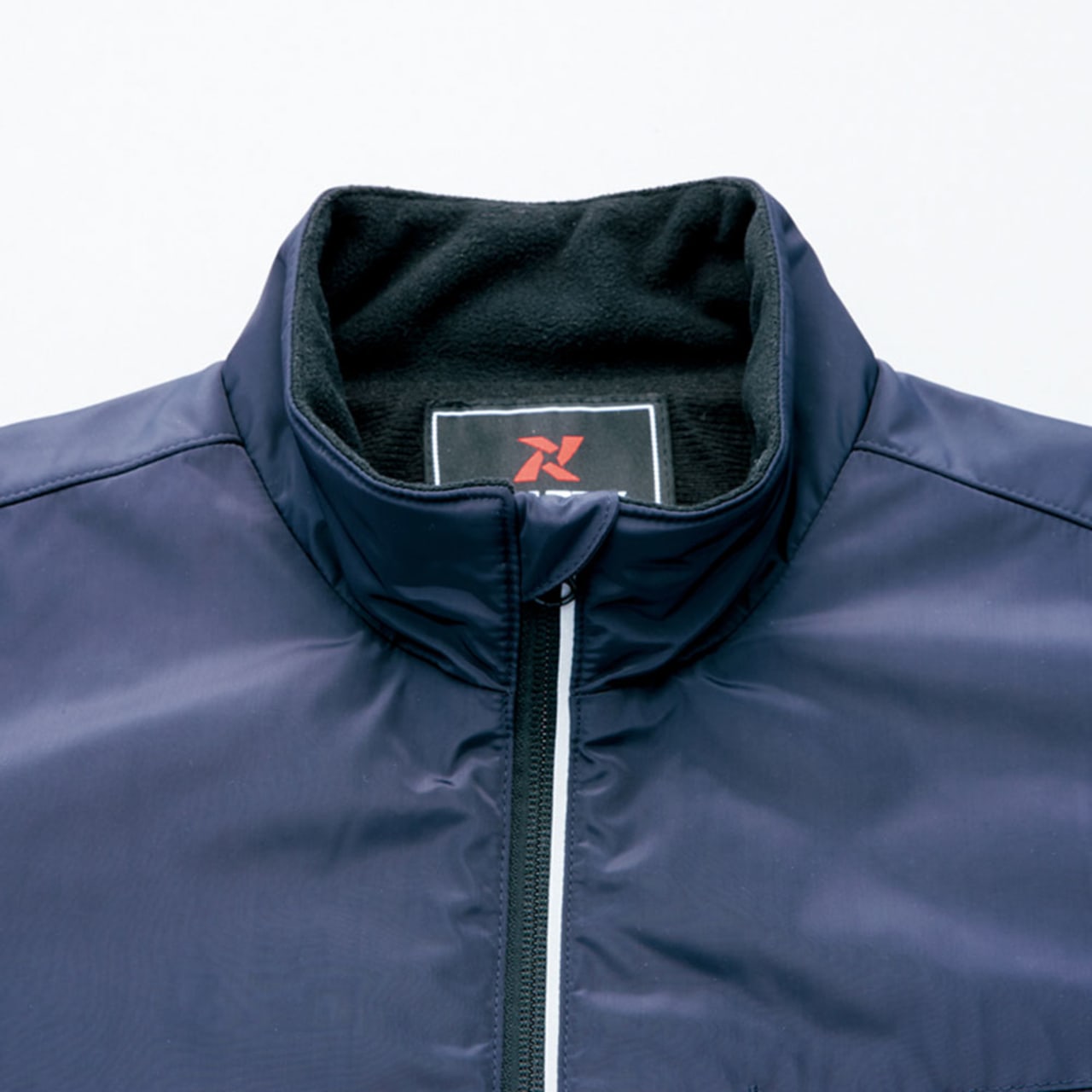 アームアップ防寒ジャケットは、軽くて動きやすい防寒ストレッチニットジャケット。軽量ストレッチ素材が体にフィットして機動力を高めてくれるので、作業が楽々はかどるでしょう。背面裏の上部には柔らかなフリース仕立て、袖口部分は袖口ゴムシャーリング仕様のため、寒い日でも暖かく作業できるはずです。また、背中の襟下の反射材で視認性を高めて夜間などの作業の安全を確保できます。サイズはSS〜5L、カラーバリエーションはブルー、ブラック、チャコール、レッドの4色を用意。イベントや販売員などのユニフォームのほか、軽作業やデリバリーなどのスタッフの防寒ジャケットにも最適です。