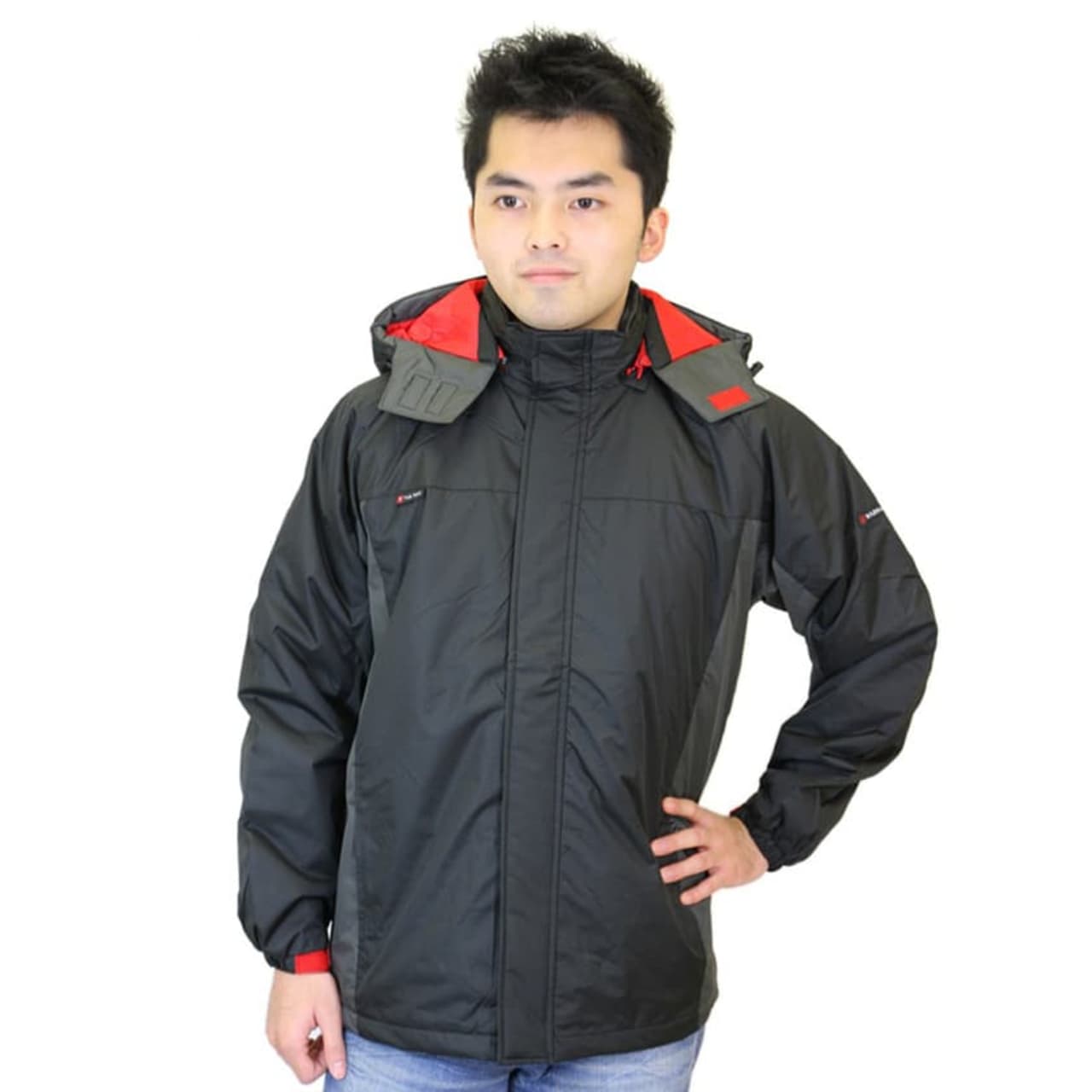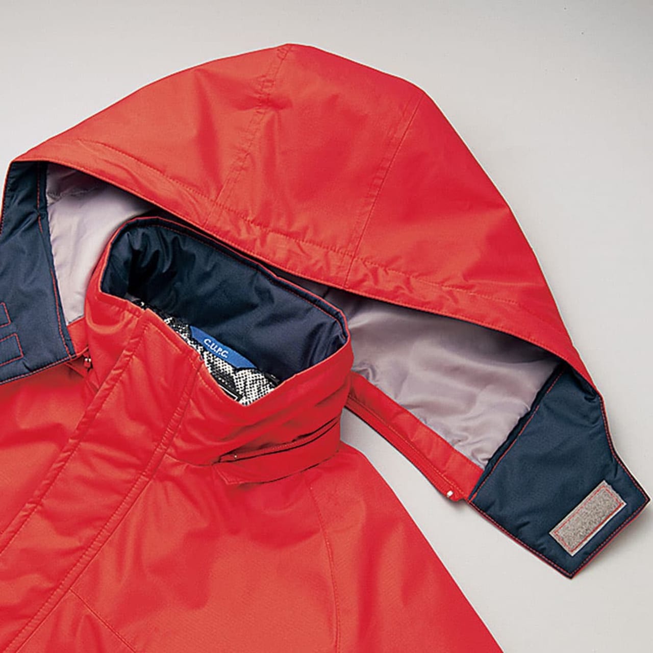 | □背裏保温アルミ □フード取り外し可能 □コードストッパー付(フード) |