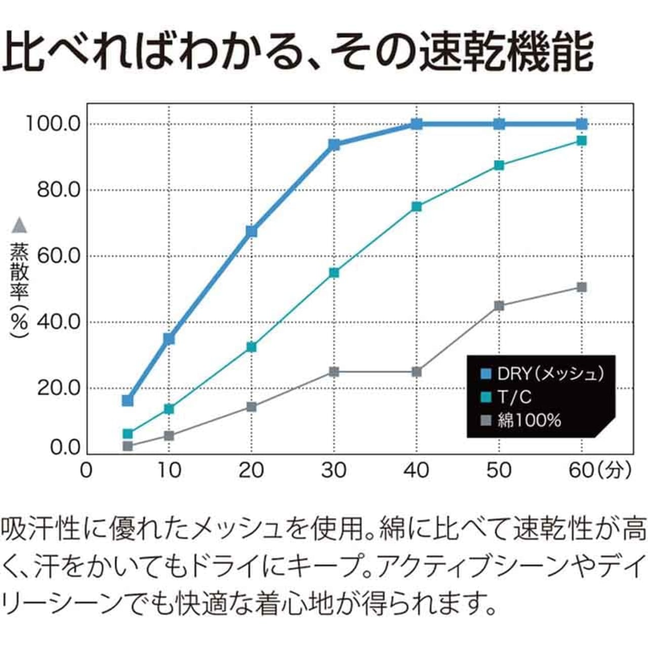 通気性抜群で着心地涼しく、汗をかいてもすぐ乾き、サラリと快適な肌触りをキープ。スポーツはもちろん、夏場のデイリーウエアとしてもおすすめです。薄手の4.4オンスの生地は、速乾性に優れたポリエステルメッシュを使用。綿の2倍以上の速乾性能があり、メッシュの細かな凹凸やスケ感は、見た目も手触りも爽やか。高い通気性で快適に過ごせます。屋外の活動に欠かせないUVカット機能も魅力。また、何度洗濯しても伸びにくく色落ちも少ないので、使用頻度の高いスポーツの練習着や、仕事のユニフォームとしておすすめです。その他、イベント、クラスポロシャツなど様々な用途でご使用いただけます。