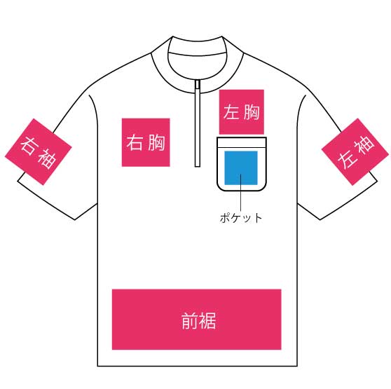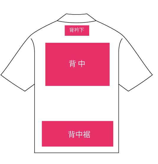 | 加工箇所例 | 左胸、右胸、袖 | 背中 | 背中全面 | 左胸と背中 | 左胸と左袖と背中 | - | - |