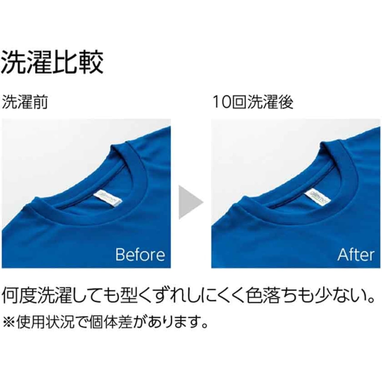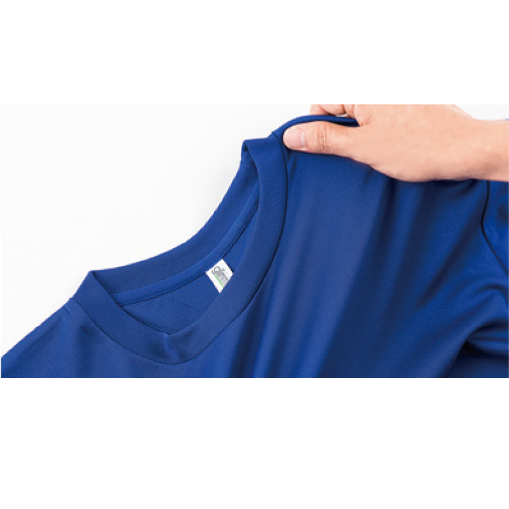 吸汗速乾性とUVカットがついた高機能なTシャツ。また、色落ちや型崩れがほとんどなく洗濯に強い事からワークユニフォーム用として人気がございます。