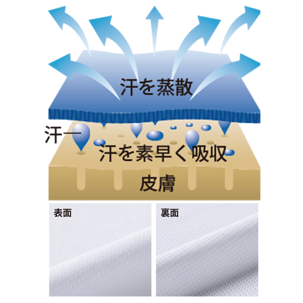 裏面にメッシュ素材を使用したドライTシャツ。