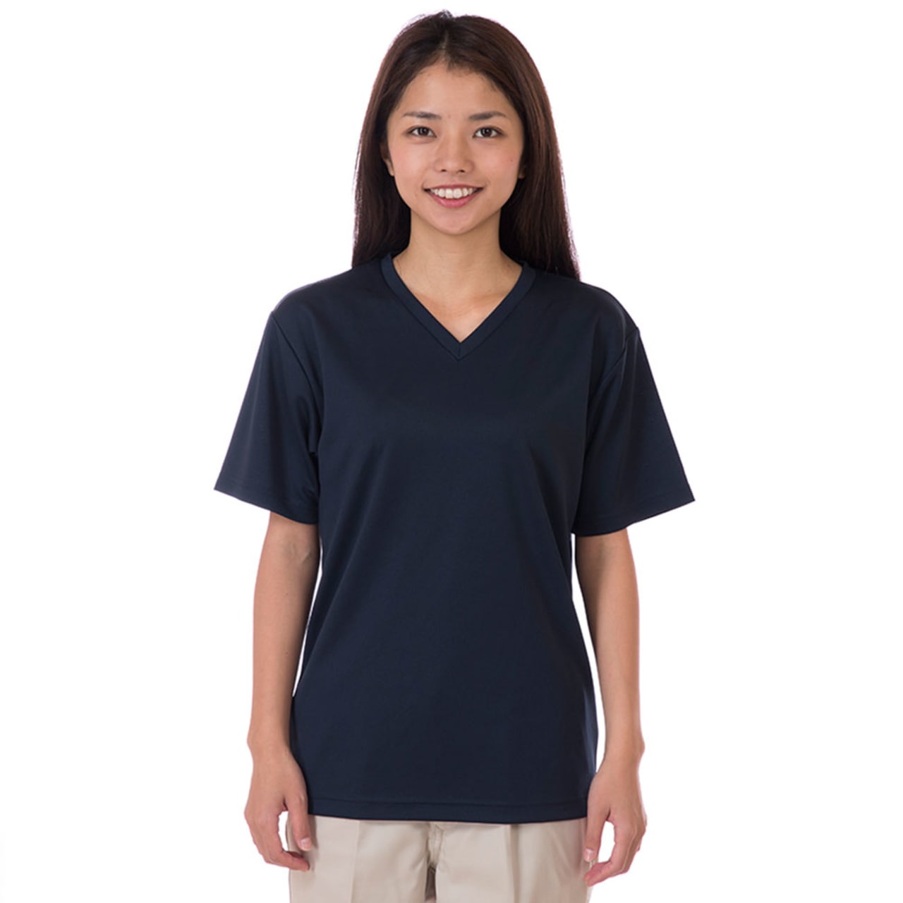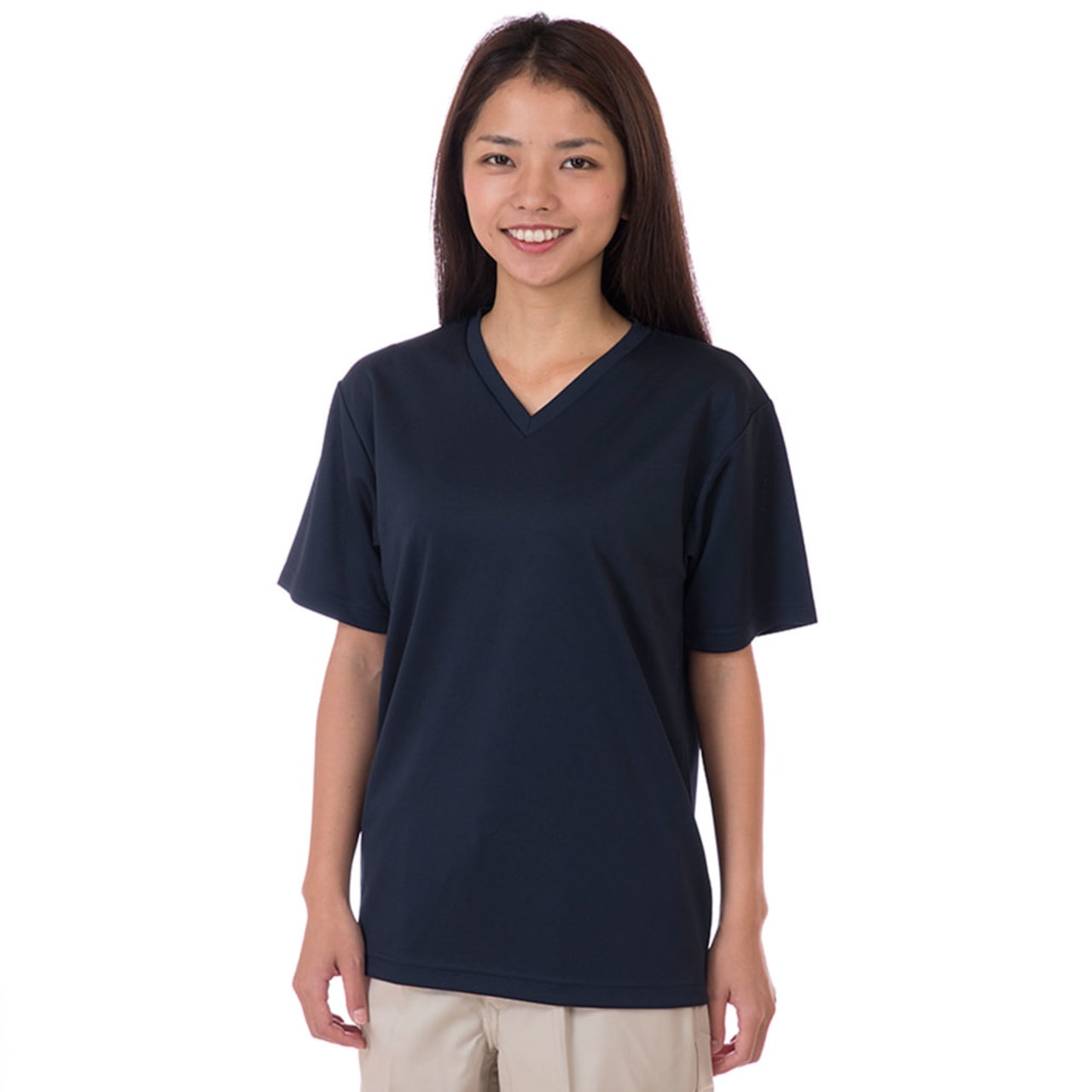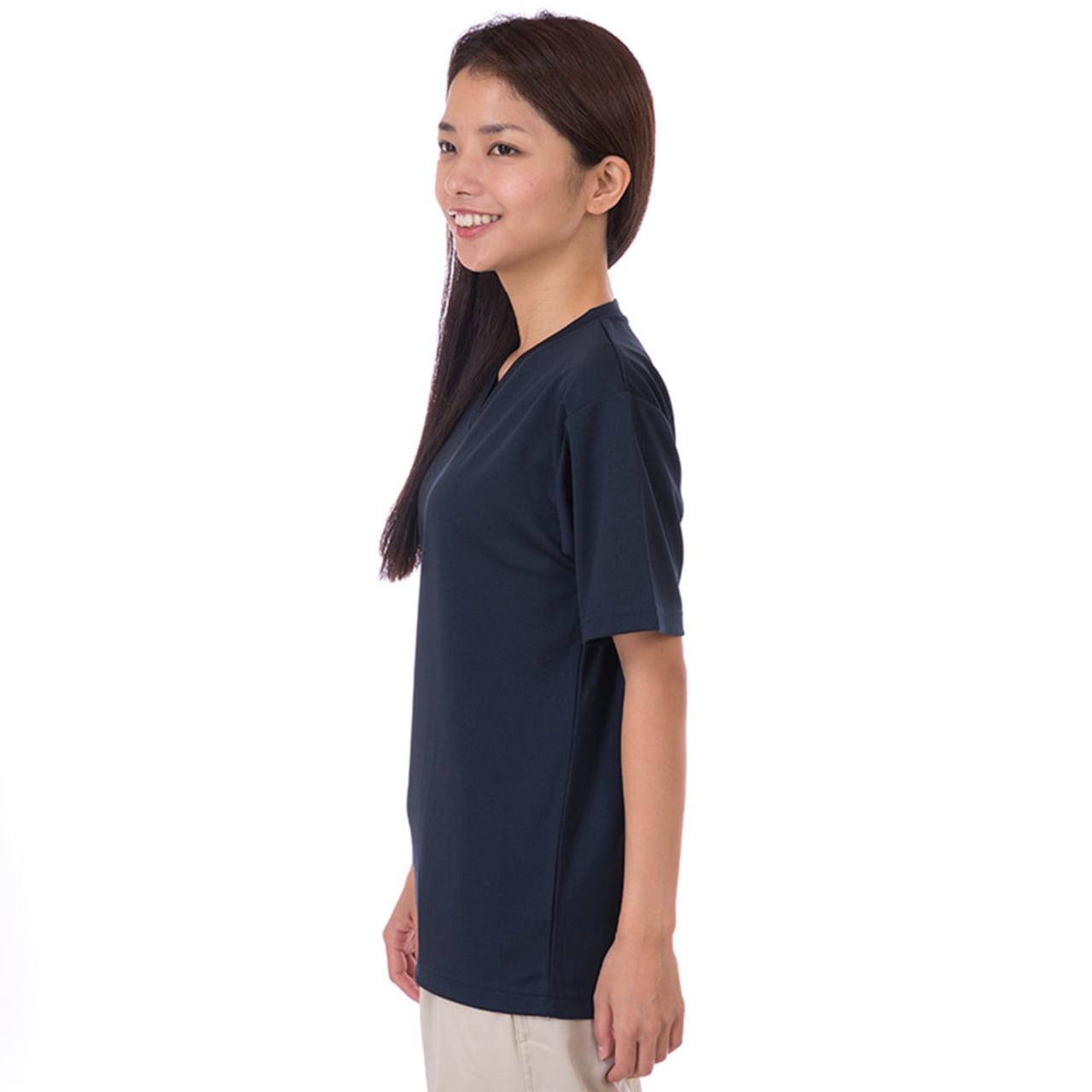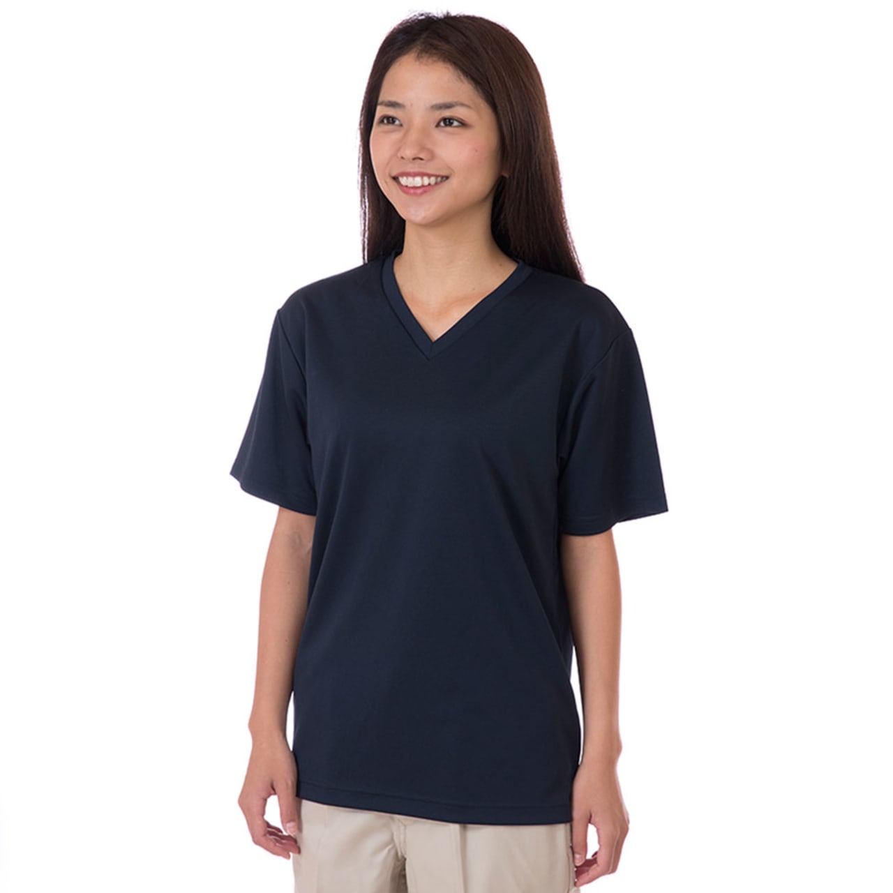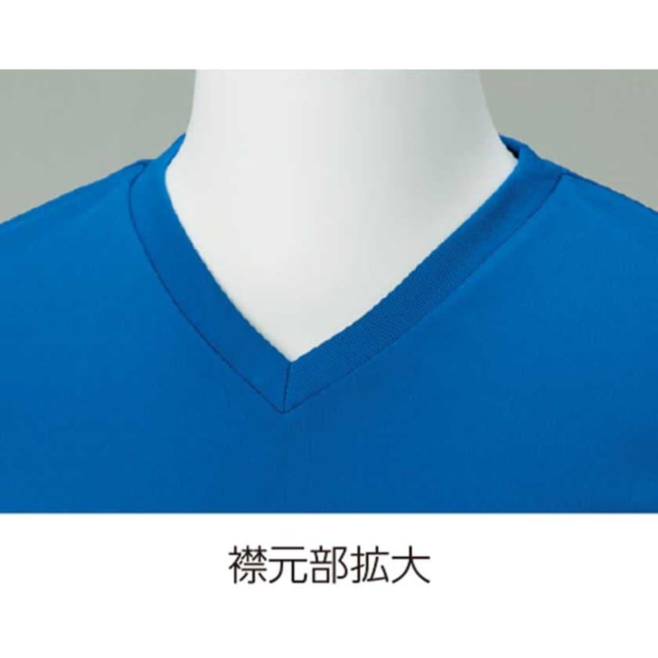 Vネックデザインで、ラフになりすぎないシャープな雰囲気を演出してくれるドライTシャツ。肌に触れる裏地面はメッシュ素材とすることで、汗をかいてもべたつきにくく、快適な着用感が持続します。生地は吸汗性と速乾性にもすぐれ、汗をかく夏場でもさらりとした肌ざわりをキープ。外部作業の多いお仕事や、スポーツシーンにもおすすめです。生地はポリエステル100%で、洗濯後も乾きやすいのが嬉しいポイント。毎日のお手入れも楽に行えます。