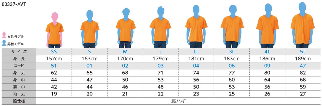 | 身巾 | 44 | 47 | 50 | 53 | 56 | 60 | 64 | 68 |