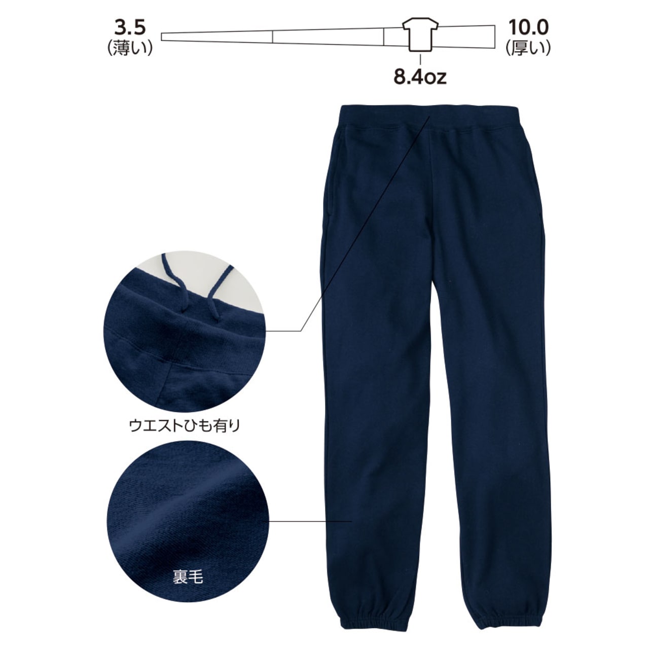 | 素材:285g/㎡(8.4oz) 裏毛 |