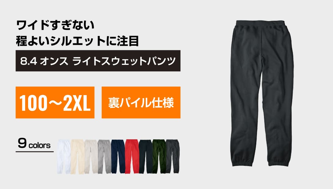 ワイドすぎない、ややスマートなシルエットがすらりとしたスタイルをつくるスウェットパンツです。リラックスした履き心地はそのままに、どこか洗練された雰囲気も感じられる一着。両脇にはポケットが配置されるなど実用性もばっちりです。バックポケットがないことで、後ろ姿もすっきりとした印象にしてくれます。また、スタッフのおすすめは、刺繡やプリントによるオリジナルウェア制作!シルクプリント、転写、刺繡の3種類の加工方法に対応しています。豊かな表現が可能で、こだわり抜いたオリジナルユニフォームがお作りいただけます。