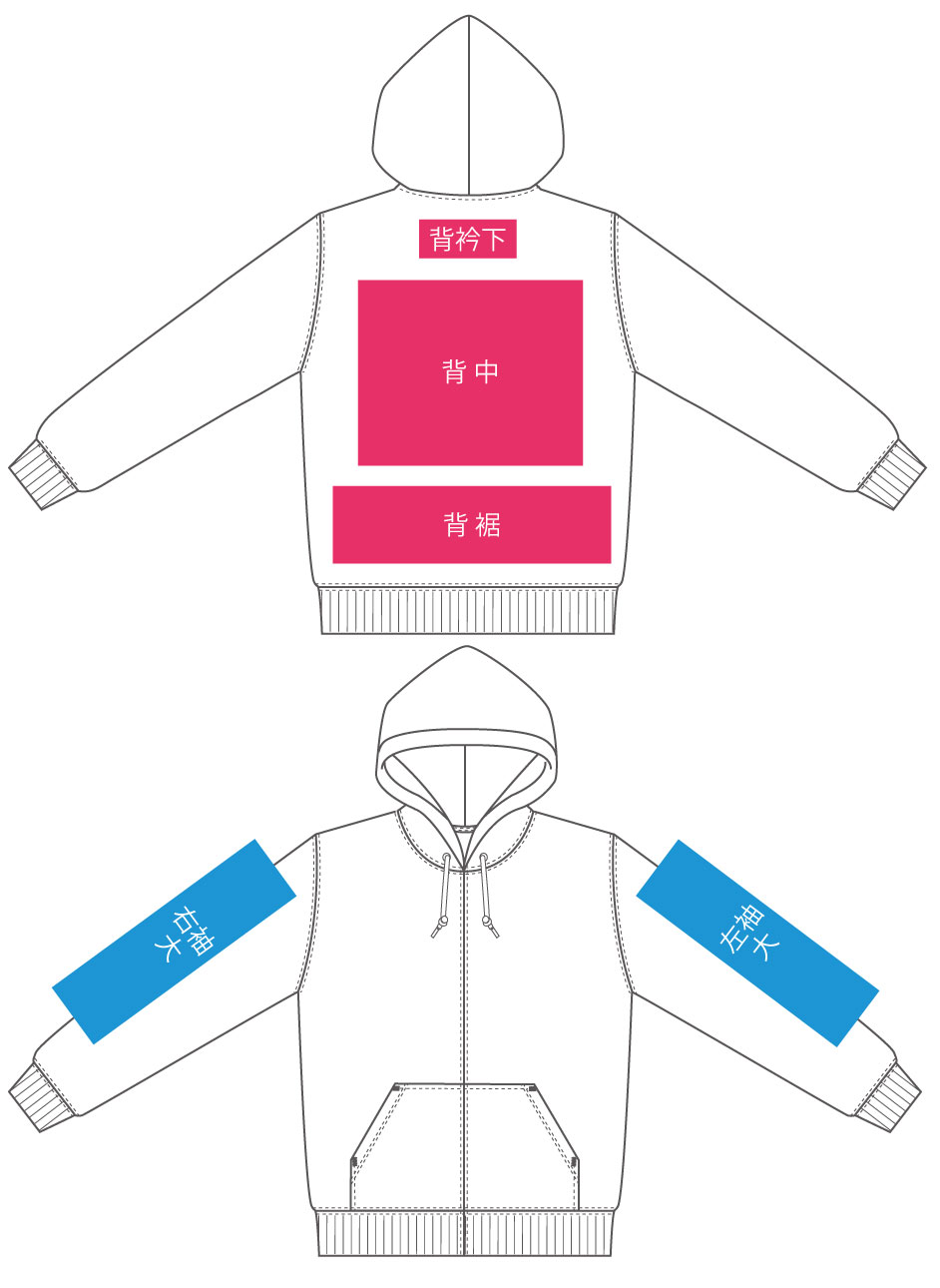 | 加工箇所例 | 左胸、右胸、袖 | 背中 | 背中全面 | 左胸と背中 | 左胸と左袖と背中 |