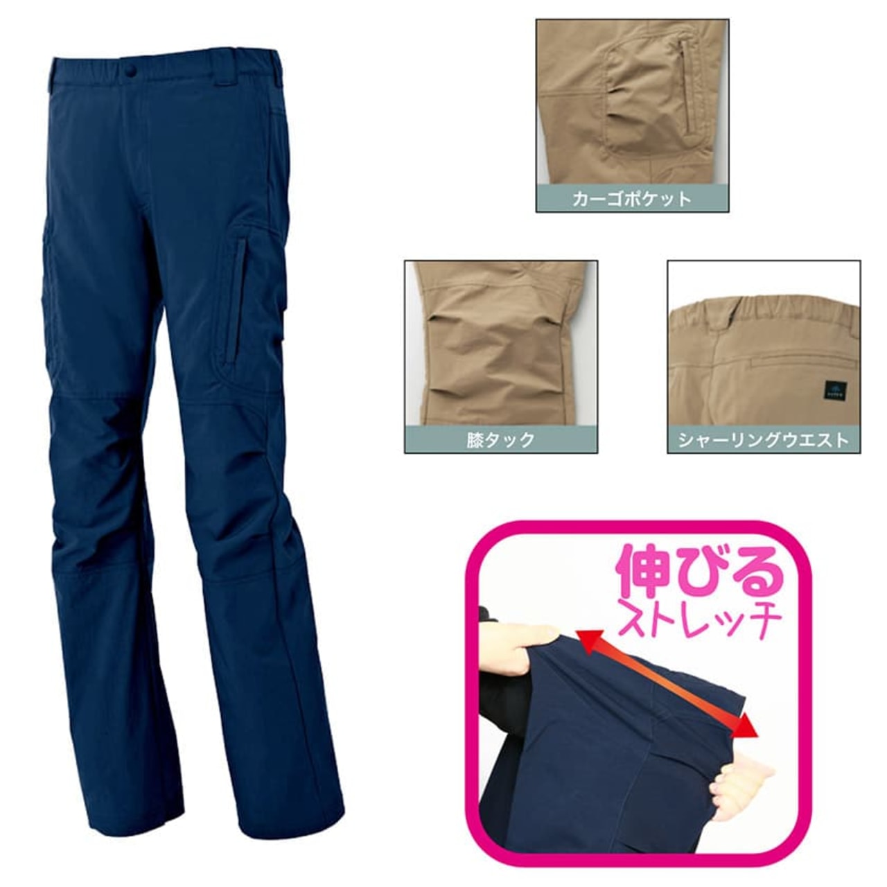 ストレッチカーゴパンツ(ノータック)(男女兼用)の商品特長