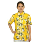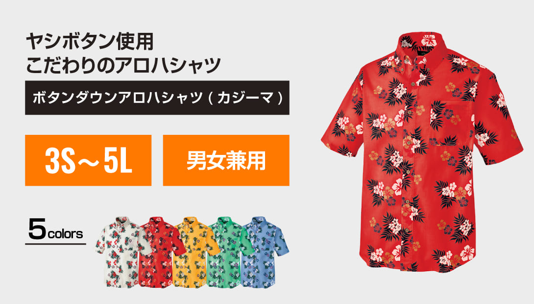夏のイベントや、スパやリゾート施設に大変おすすめなアロハシャツです。華やかかつ上品な配色で、ボタンダウンのデザインがきちんと感を演出し、ホテルなどのフォーマル寄りなシーンにもお使いいただけます。ヤシの実のボタンを使用しているのもポイントです。後ろのヨークにはサイドタックが入っており運動量アップ、作業も快適に。裾はラウンドで、インでもアウトでも◎。ユニセックス展開ですが、3SとSSはレディースラインシルエットとなっており、小柄な女性にもフィットします。