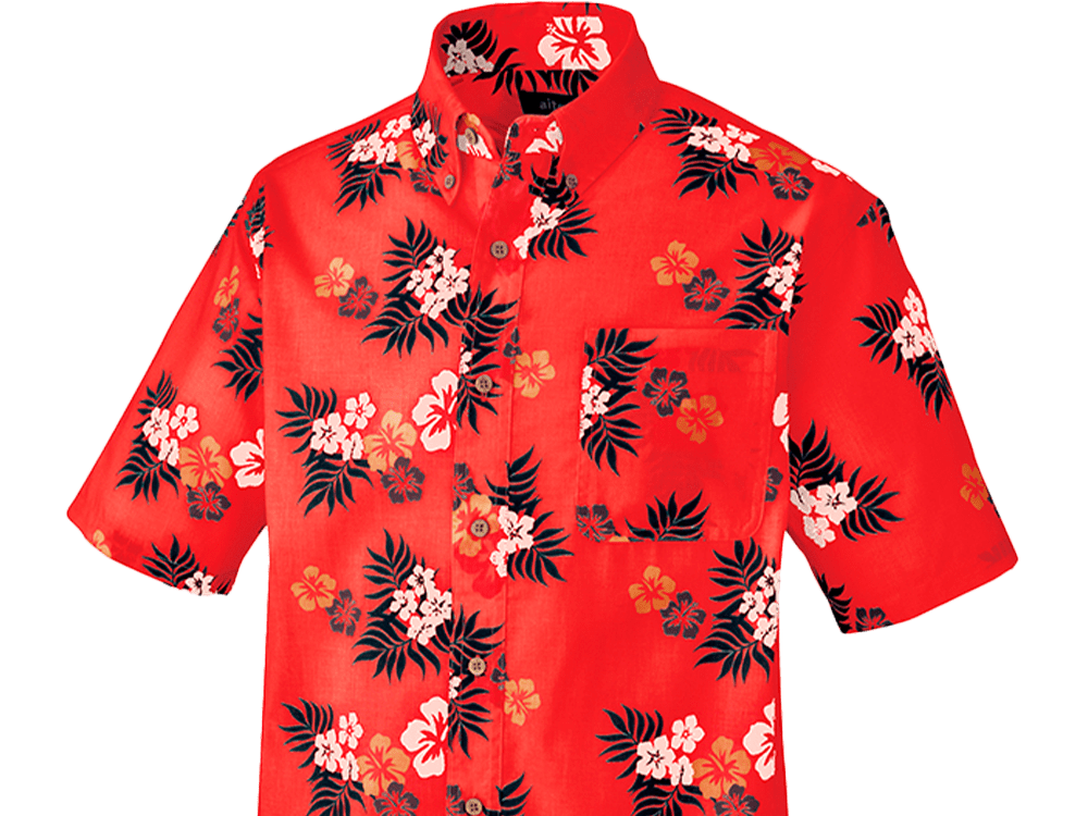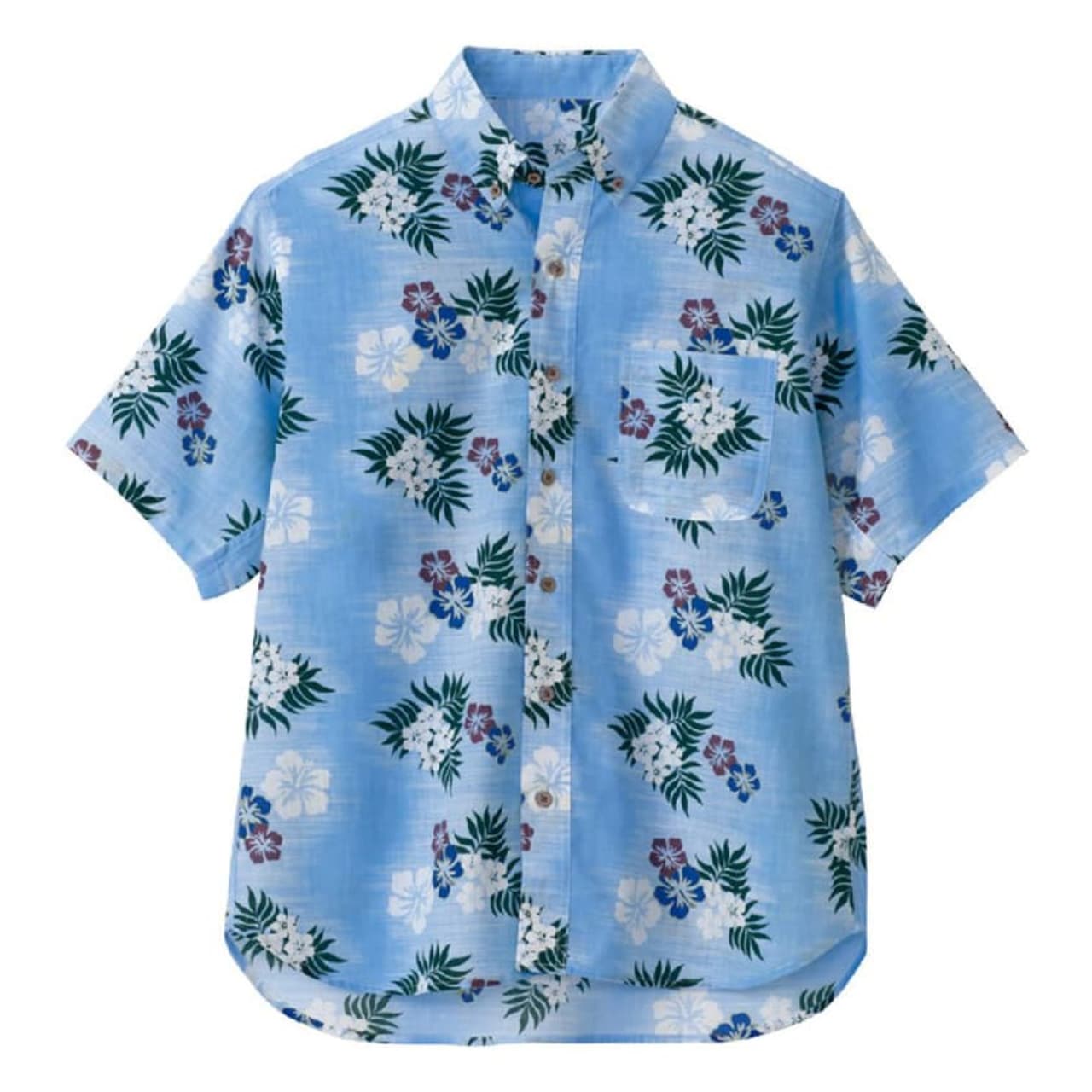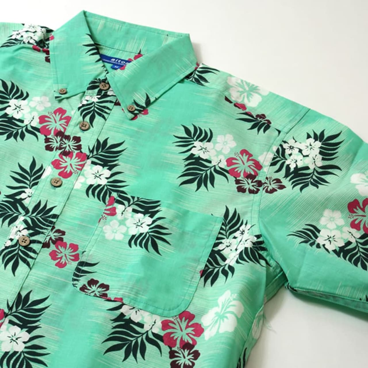 シーンを選ばない上品なハイビスカス柄ボタンダウンアロハシャツ