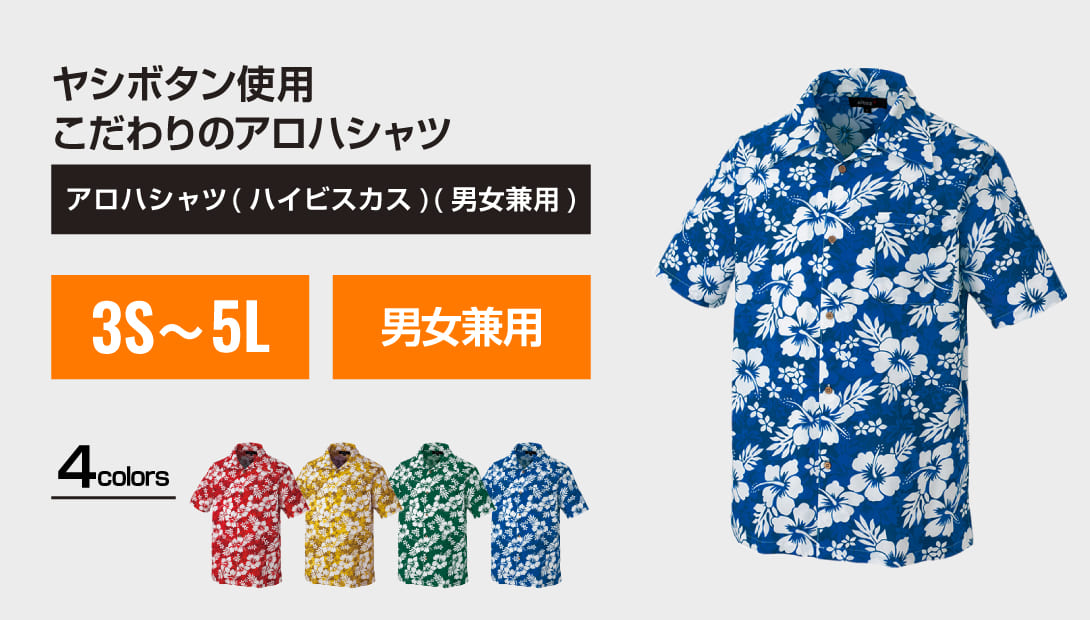 夏のイベントや、スパやリゾート施設に大変おすすめな開襟アロハシャツです。華やかでありながら、シンプルな色使いが◎。ヤシの実のボタンを使用しているのもポイントです。ゆったりとしたシルエットで後ろのヨークにはサイドタックが入っており運動量アップ、作業も快適に。中にTシャツを重ね着しても余裕があります。鮮やかな4色のカラーバリエーションで、シーンやチームなどで使い分けるのもおすすめです。