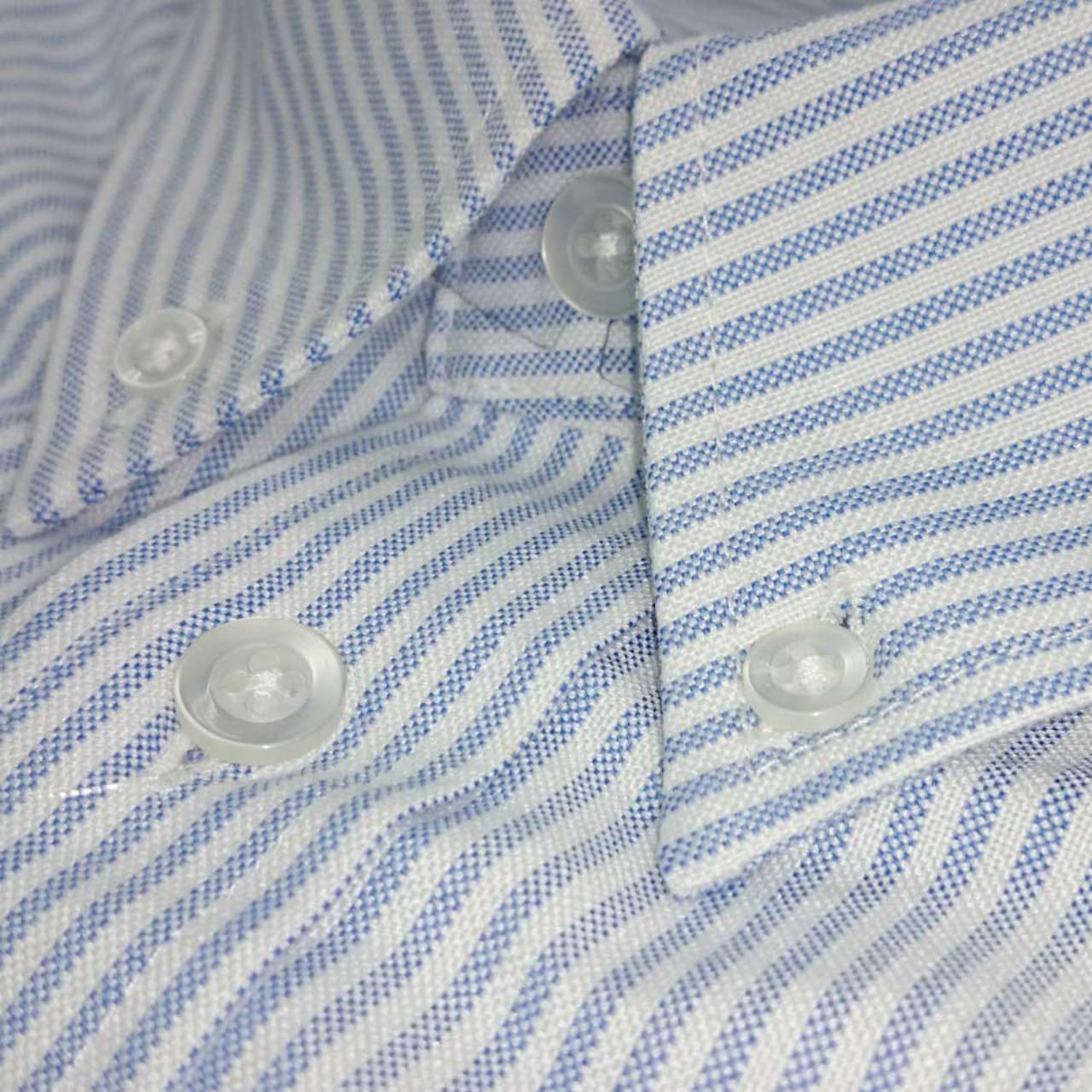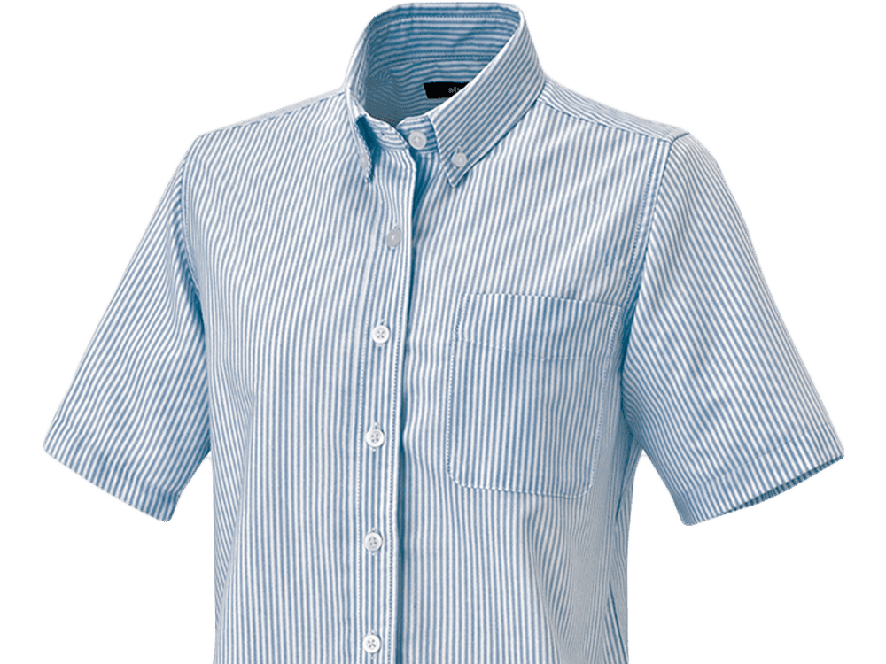 襟幅を小さく前立てを細く、台襟は低めとデザインを調整し、女性らしさを演出したオックスフォード素材の半袖シャツ。さらにボタンダウンのデザインで形が崩れにくく、きっちりと上品な印象を与えます。中央のプリーツで背中のゆるみをとり、すっきりとしたシルエットに仕上げているのもポイント。ファッショナブルでサロンエプロンなどとも相性抜群。無地、ストライプの2パターンをご用意しております。また、ポリエステルと綿の混紡素材でシワになりにくく、吸水速乾、しなやかな風合いで着心地も良くイージーケアです。