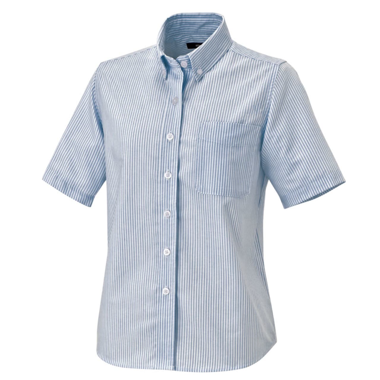 女性らしさのある爽やかなオックスフォード半袖シャツ