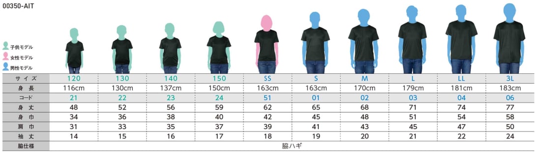 | サイズ | 120 | 130 | 140 | 150 | SS | S | M | L | LL | 3L |