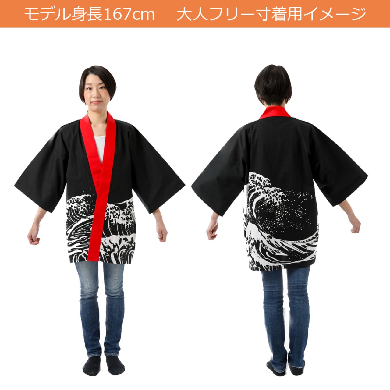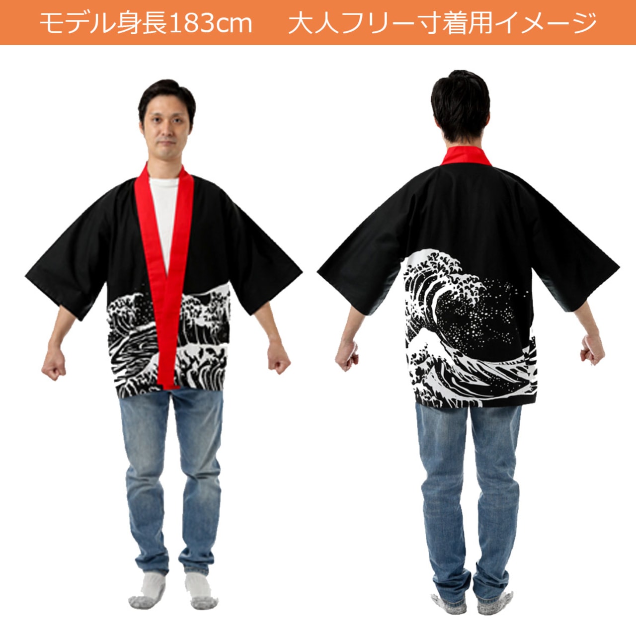 背中の波頭が大迫力の波柄はっぴ