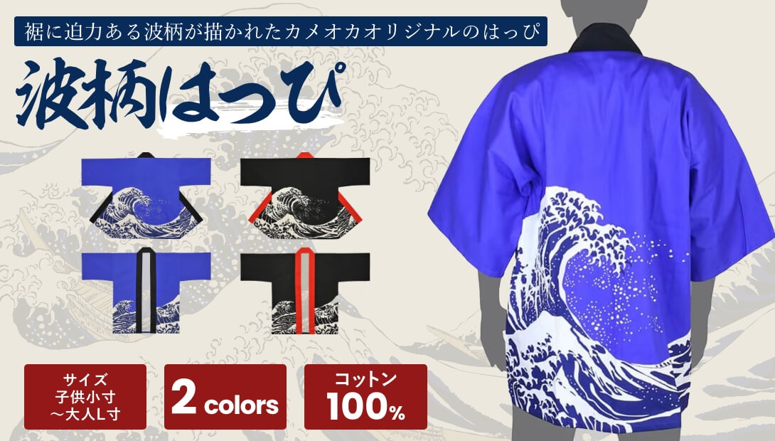 又、カメオカのはっぴ(法被)は綿100%で反応染を採用しており高品質となっております。フルオーダーのはっぴ(法被)も他店に比べ割安となっております。