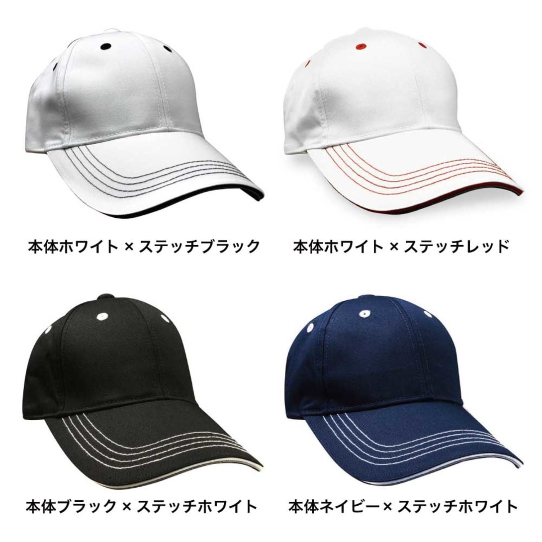 ステッチのカラーがとってもおしゃれなアイテム。本体色と相性の良いカラーをチョイスしております。フロントにオリジナル刺繍を入れる場合、刺繍カラーはステッチ色と同色にすると統一感あるカラーコーディネートになります。