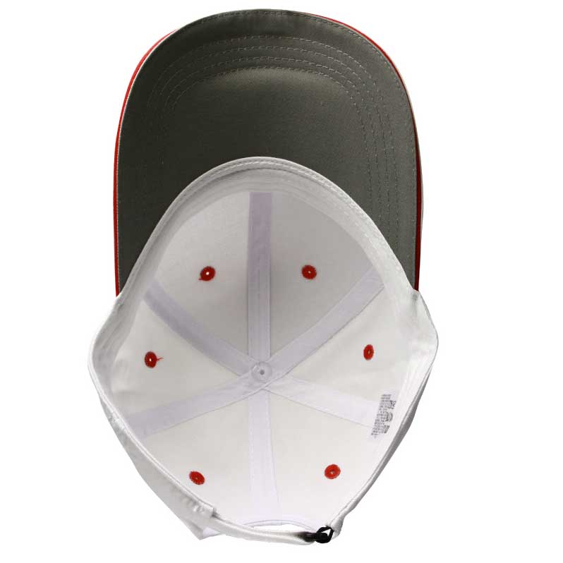 庇に入ったステッチカラーは生地と同色にして目立たせないのですがよくあるパターンですが、こちらのキャップはステッチカラーをあえてカラフルな色にしております。本体色とステッチカラーの相性も絶妙で、目立ちすぎないカラーをチョイス。おしゃれ感漂うアイテムです。
