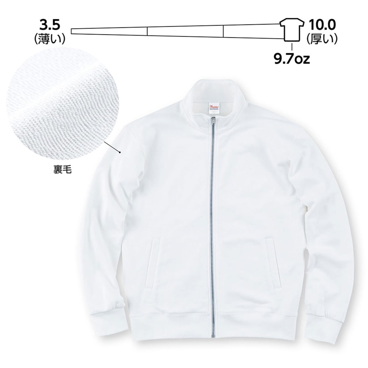 | 素材:330g/㎡(9.7oz)裏毛 |