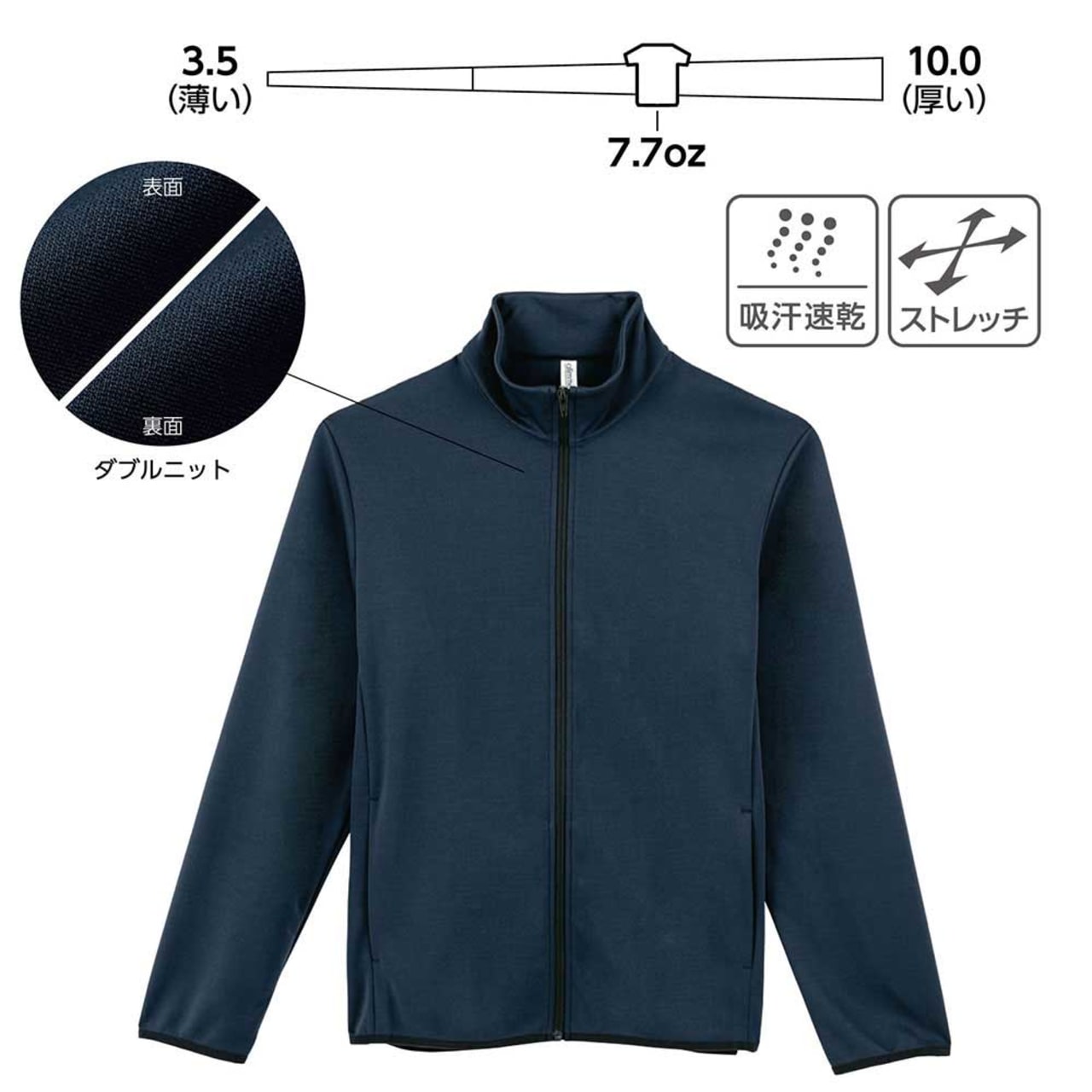 | 素材260g/㎡(7.7oz)ダブルニット |