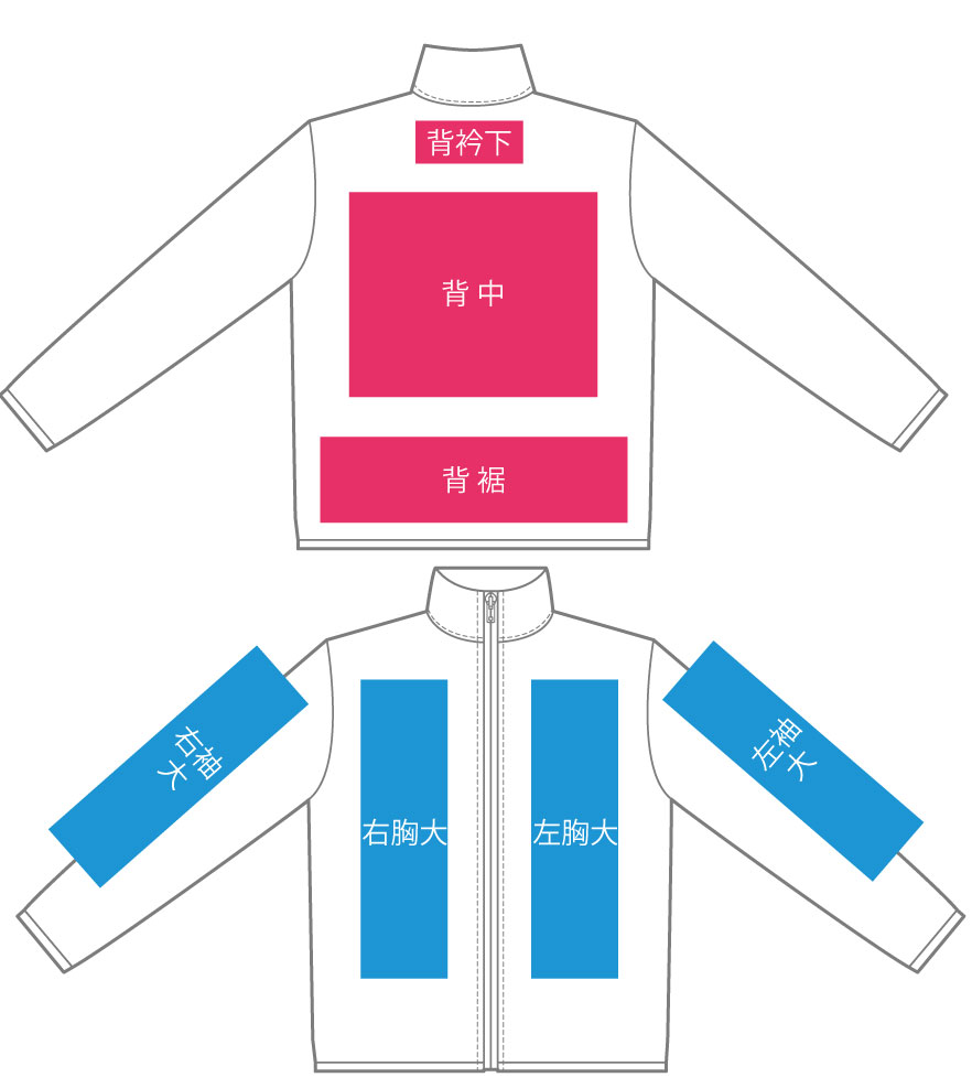 左胸と背中 | 左胸と左袖と背中 |