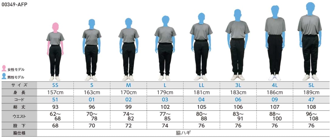 | サイズ | SS | S | M | L | LL | 3L | 4L | 5L |