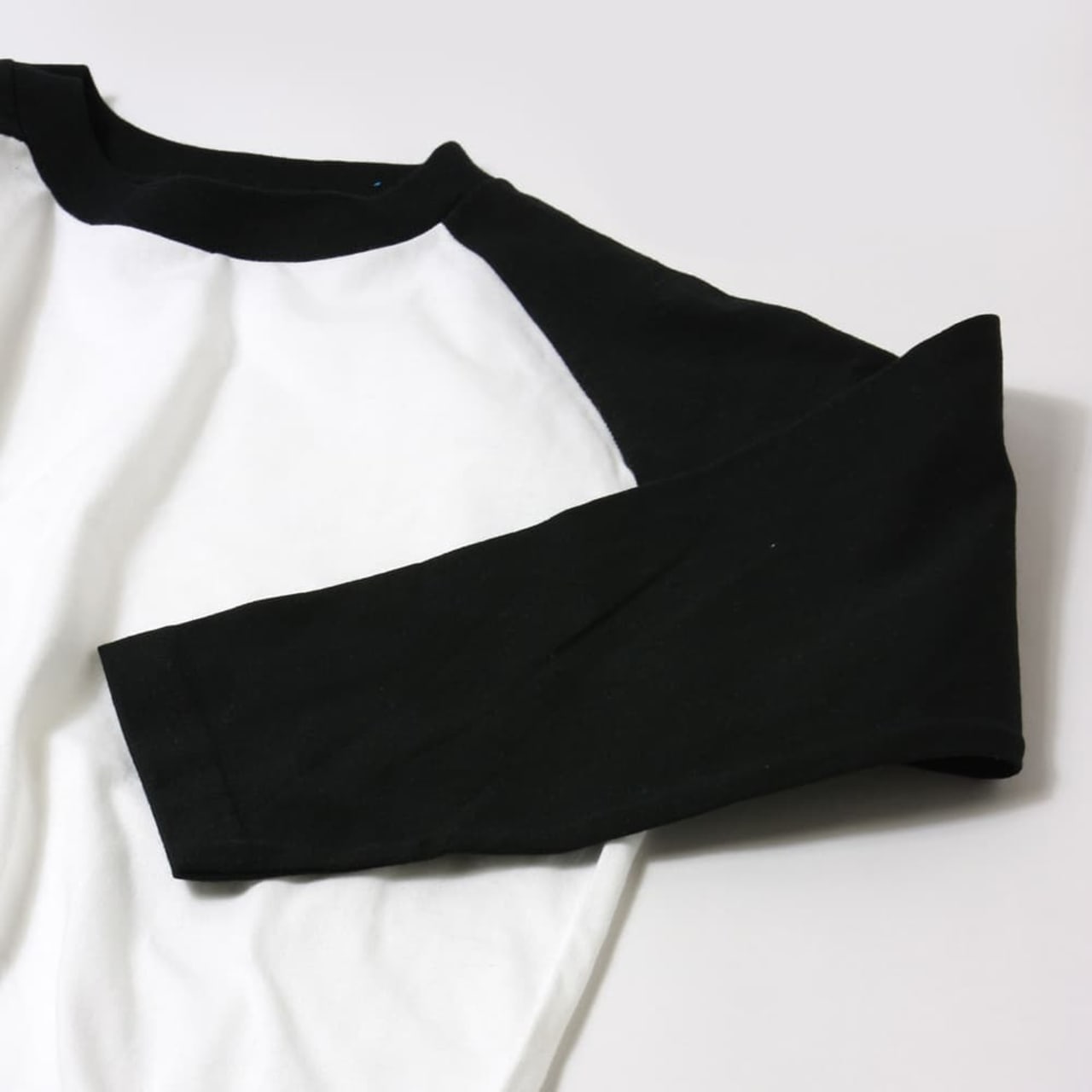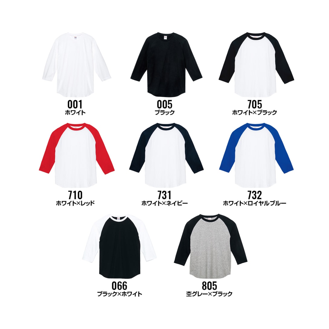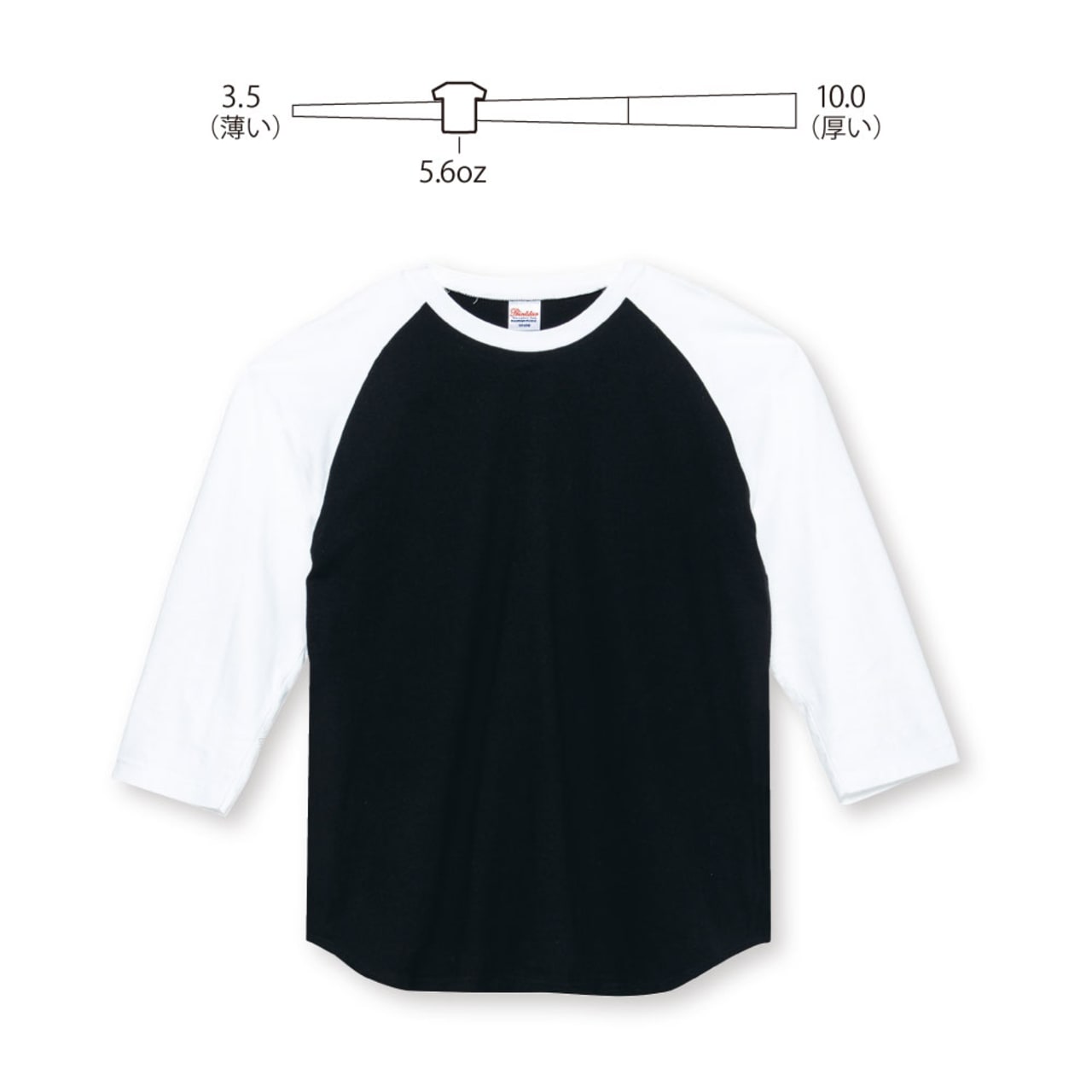 七分袖のラグランTシャツ。5.6オンスという程良い厚みのTシャツです。