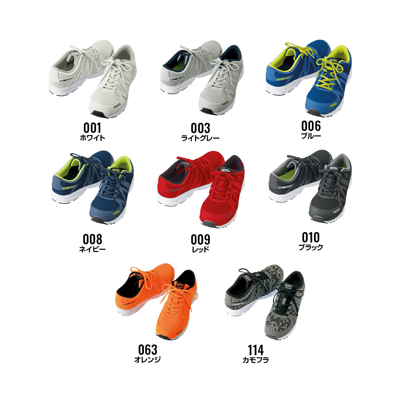 アッパーは合成皮革とナイロンメッシュ、ソールはEVAと合成ゴムを使用しています。先心には樹脂先芯