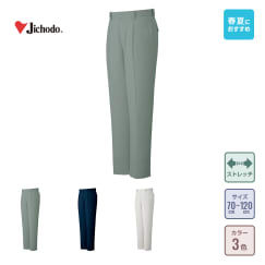 ソフトな質感で、動きやすさ抜群のストレッチワンタックパンツです。アースグリーン、シルバー、ネービーの3色のカラーは、どれも落ち着きのある定番色で、誰でも気軽に着やすく、また上着との組み合わせも楽しめます。