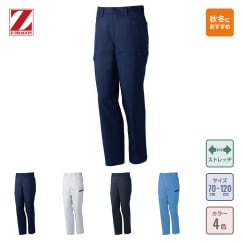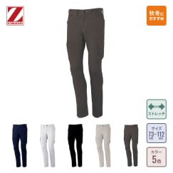 自重堂の人気ブランドであるZ-DRAGONから発売されているストレッチレディースパンツです。あらゆる現場に対応できるカジュアルワークの定番ともいえるようなモデルで、キャメルとネイビー、シックブラック、シルバーの4色展開しています。