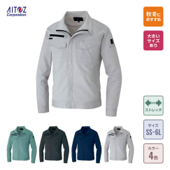 帯電防止・ストレッチ素材の長袖ブルゾン。袖ポケットや袖ペン差し等、様々なワークシーンに合わせた、使いやすい収納力を備えています。 ※春夏対応商品、別途あり(AZ-30530)